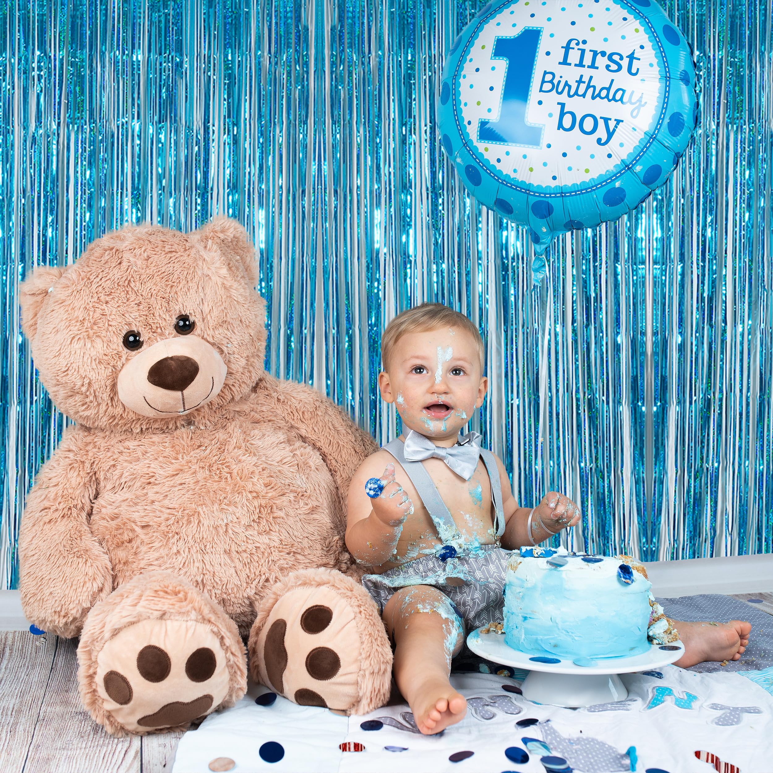 The size of each metallic tinsel foil fringe curtain is 3.2 feet wide and 8 feet long, Package include 2 pack foil fringe curtains, suitable for hanging on a door or coverage a wall fully