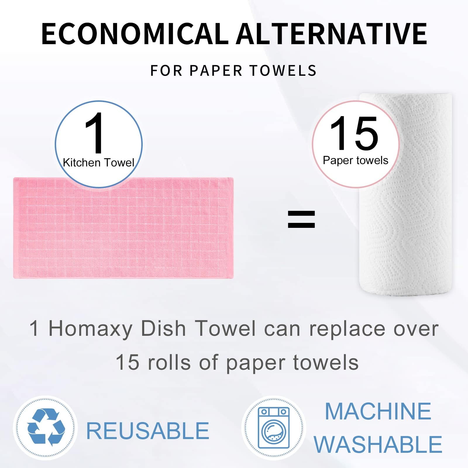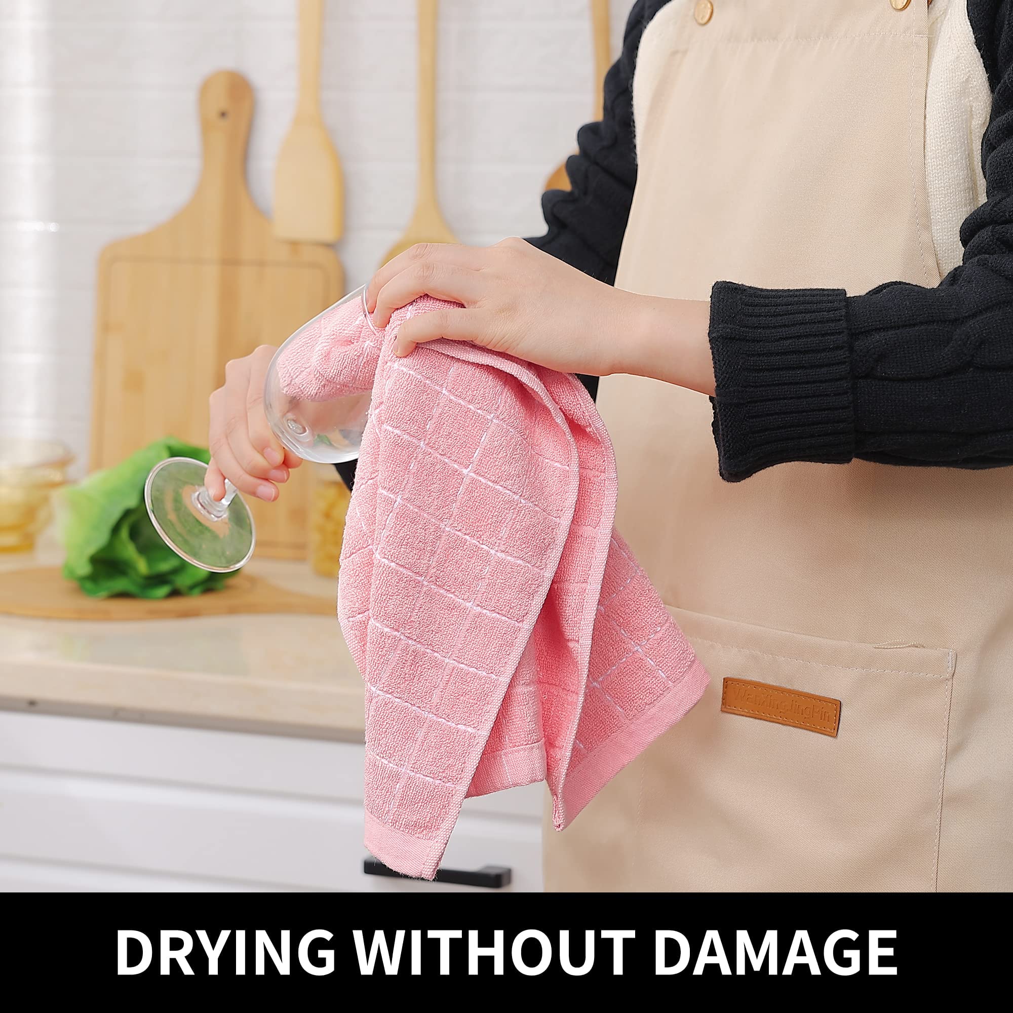 Super Absorbent: These dish towels are designed with upgraded terry structure, are lightweight, highly absorbent, and dry quickly. They can easily absorb plenty of liquid or wipe oil stains