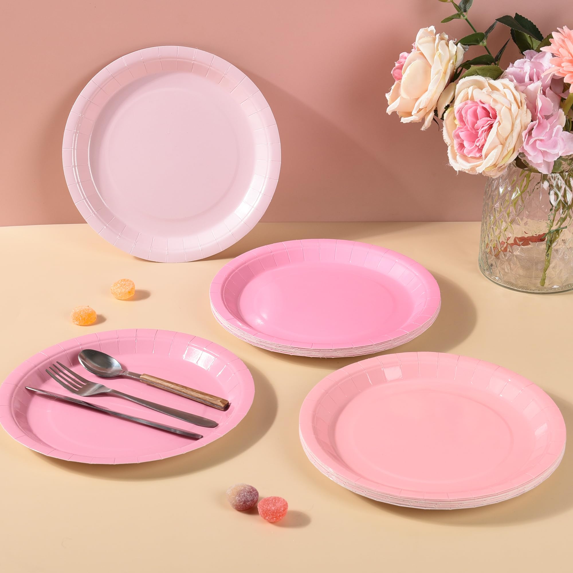 Pink Decorations: These pink paper plates feature cute and decorative pale pink, light pink, hot pink, and blush pink colors that adds a cheerful touch to your table setting, perfect for any celebration or event where a pop of color is needed, making your festivities more memorable.
