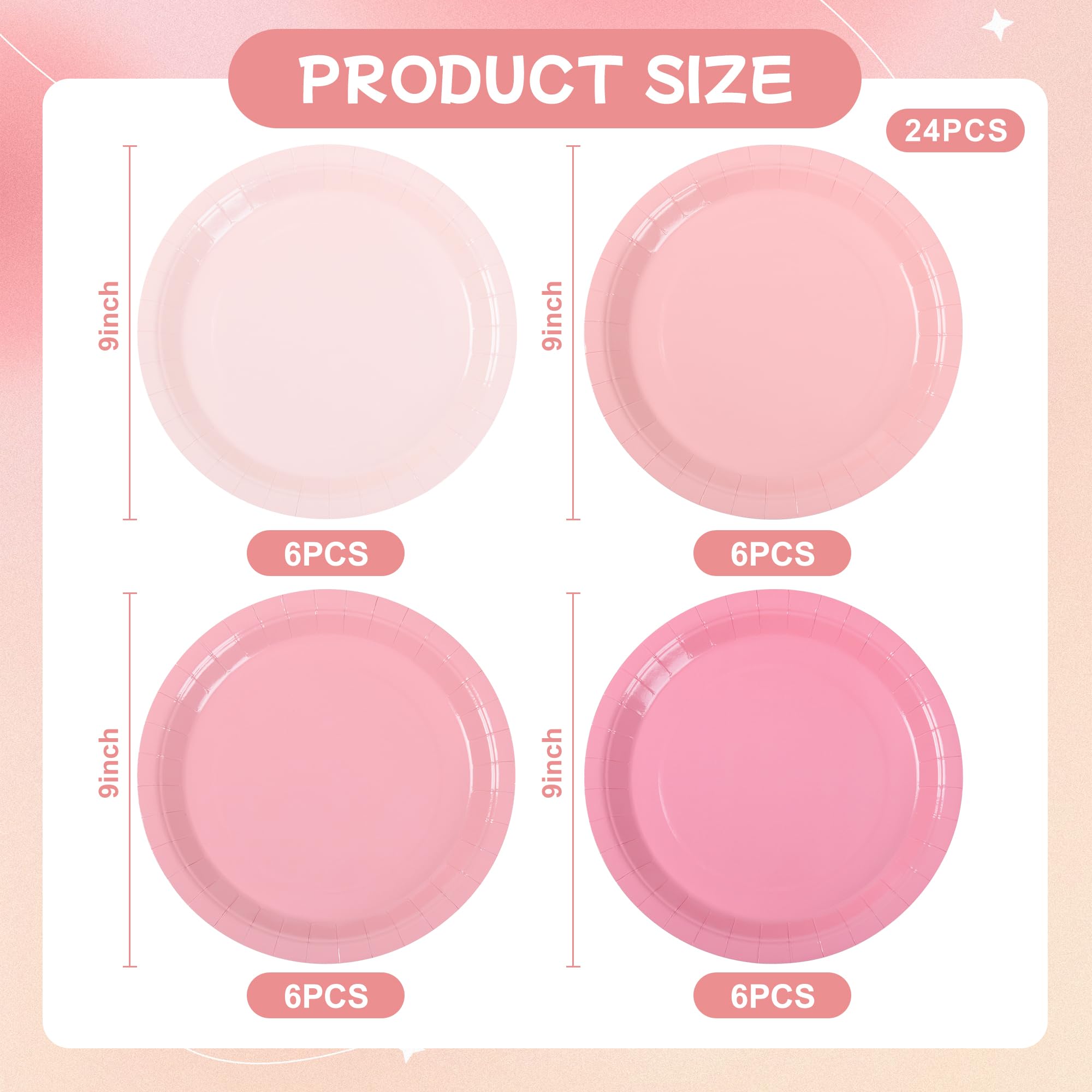 Pink plates party paper supplies - disposable sturdy tableware for celebrations and events - 4 colors. Perfect for pink birthday decorations, pink baby shower decorations, and girl party decorations. Create a celebratory atmosphere and set the mood for a memorable event with these stylish decorations. Specifications: Materials: paper Size: 9 x 9 inch Color:gradient pink Package includes: 24/48 x pink party plates Notes: Manual measurement, these may vary in sizes slightly. The color may exist a slight difference due to different screen displays.