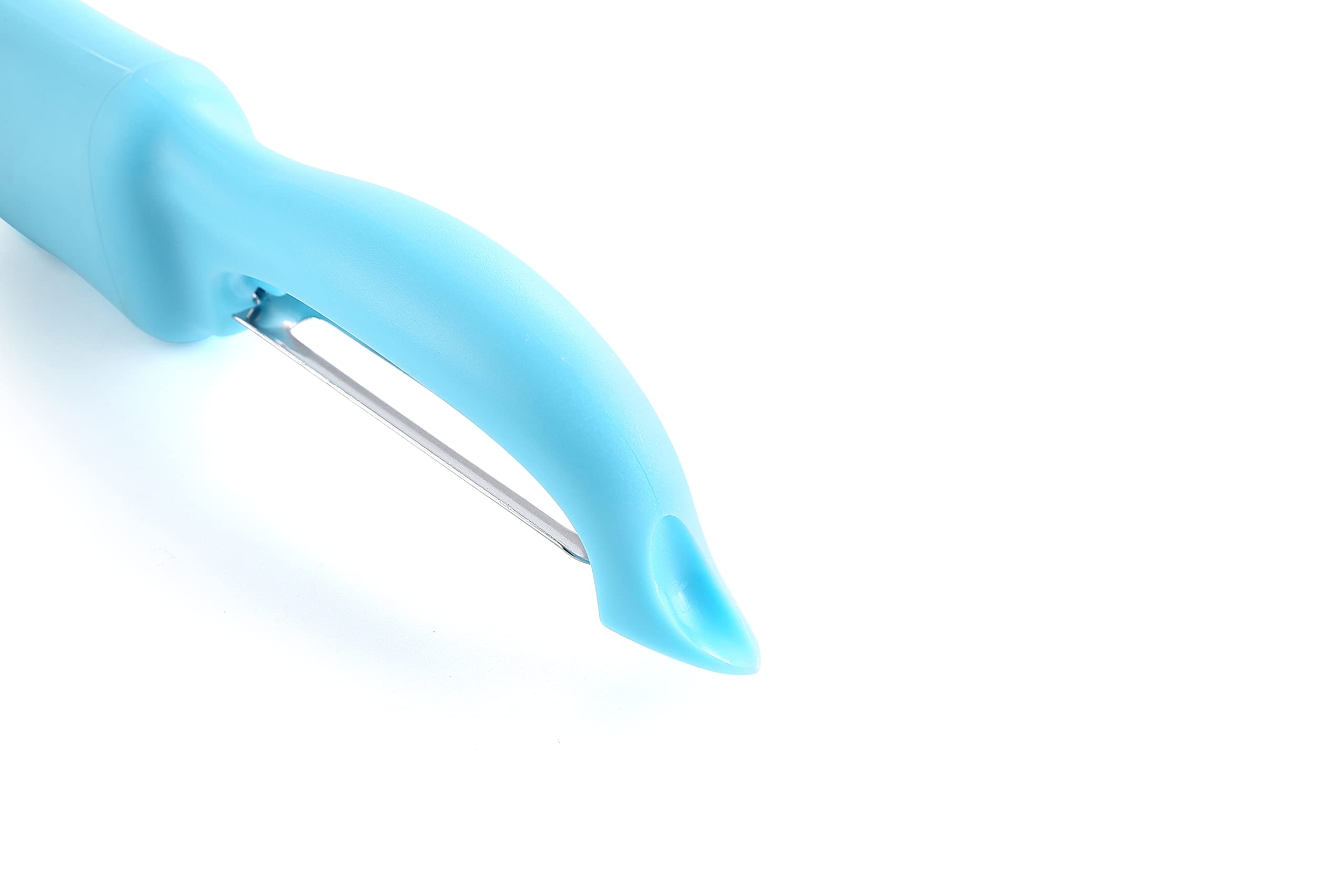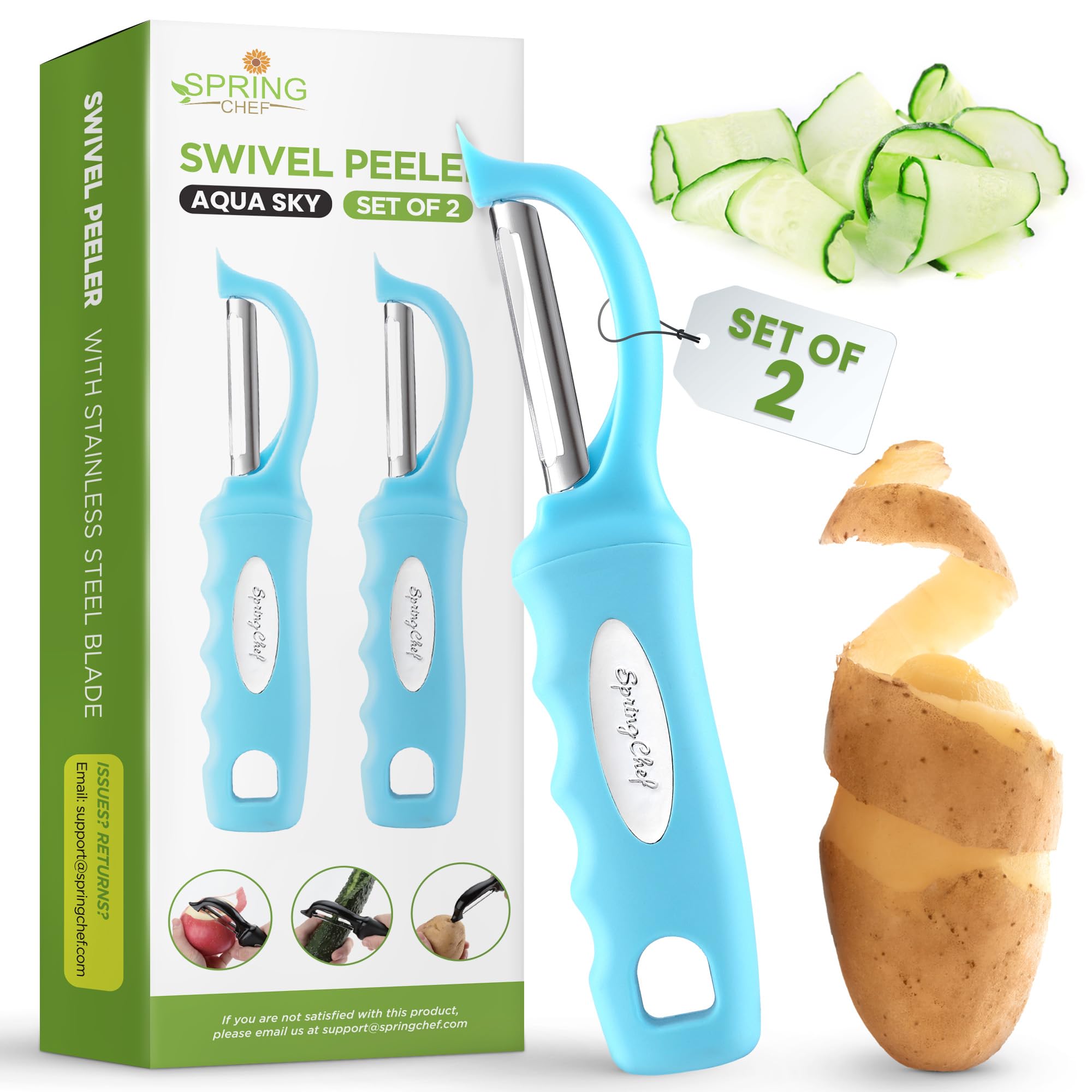 Smooth, Effortless Peeling - Dual Stainless Steel blades stay ultra sharp and swivel to glide along fruits and vegetables easily. Includes a built-in blemish remover.