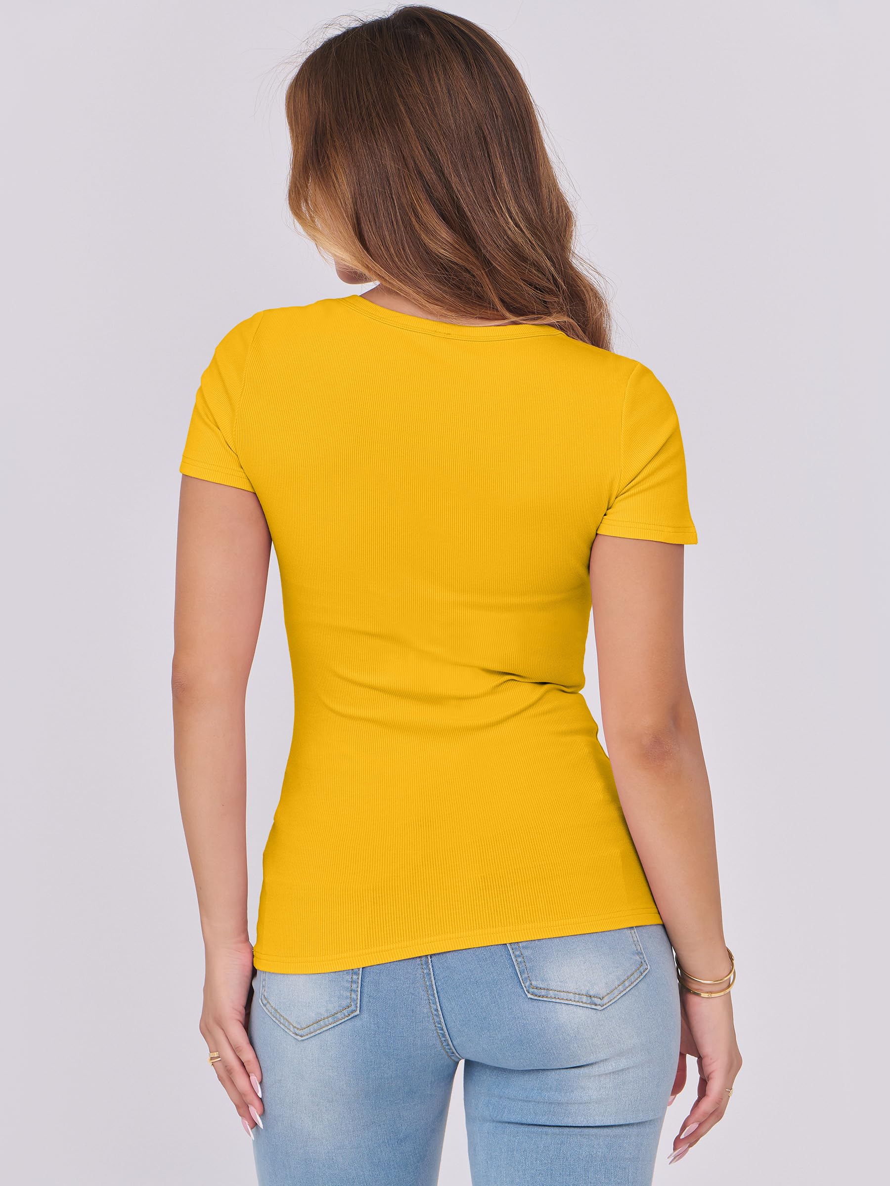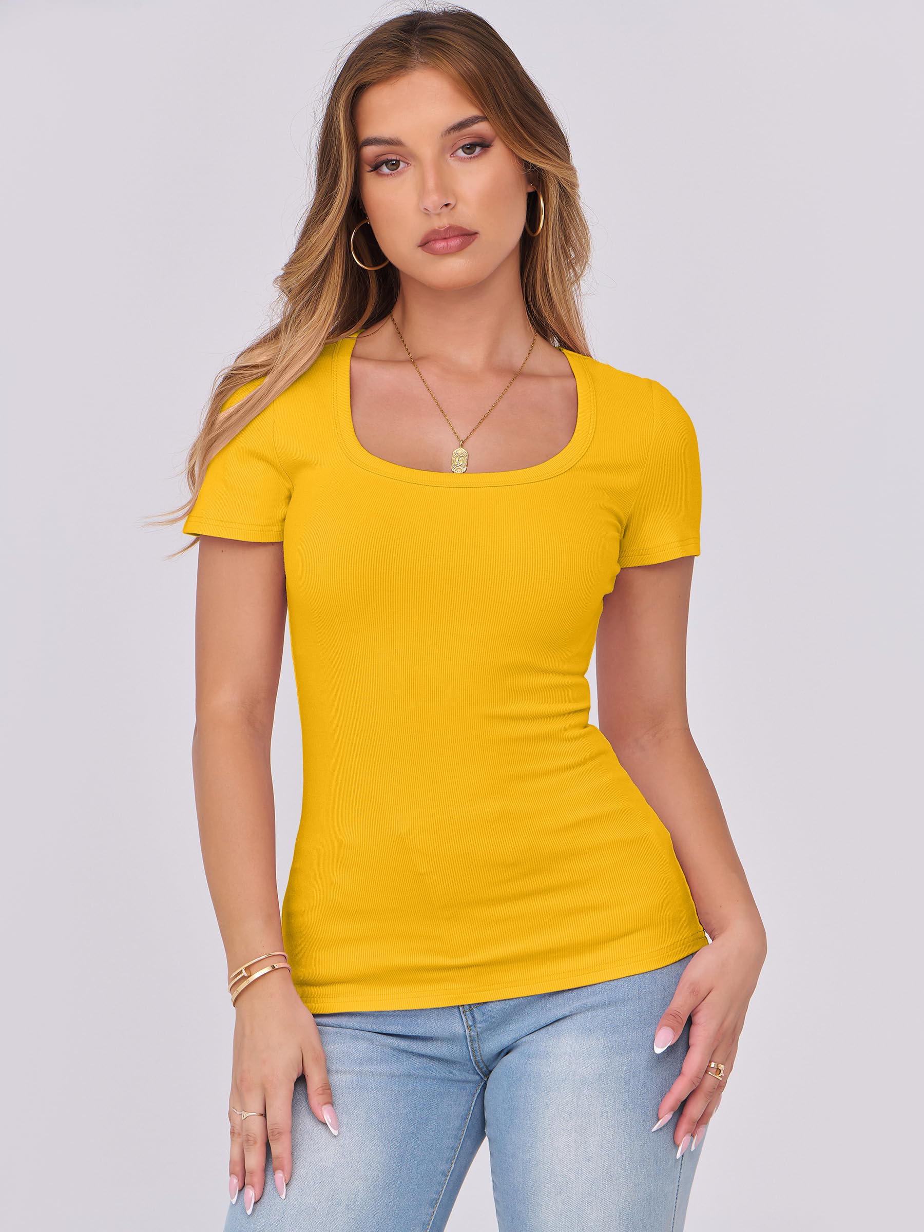 Features - Womens summer tops are designed with ribbed knit, scoop neck, short sleeve, slim fit. Suitable for daily wear, home, work, street wear, party, dates, vacation, shopping, cafes and other casual occasions.