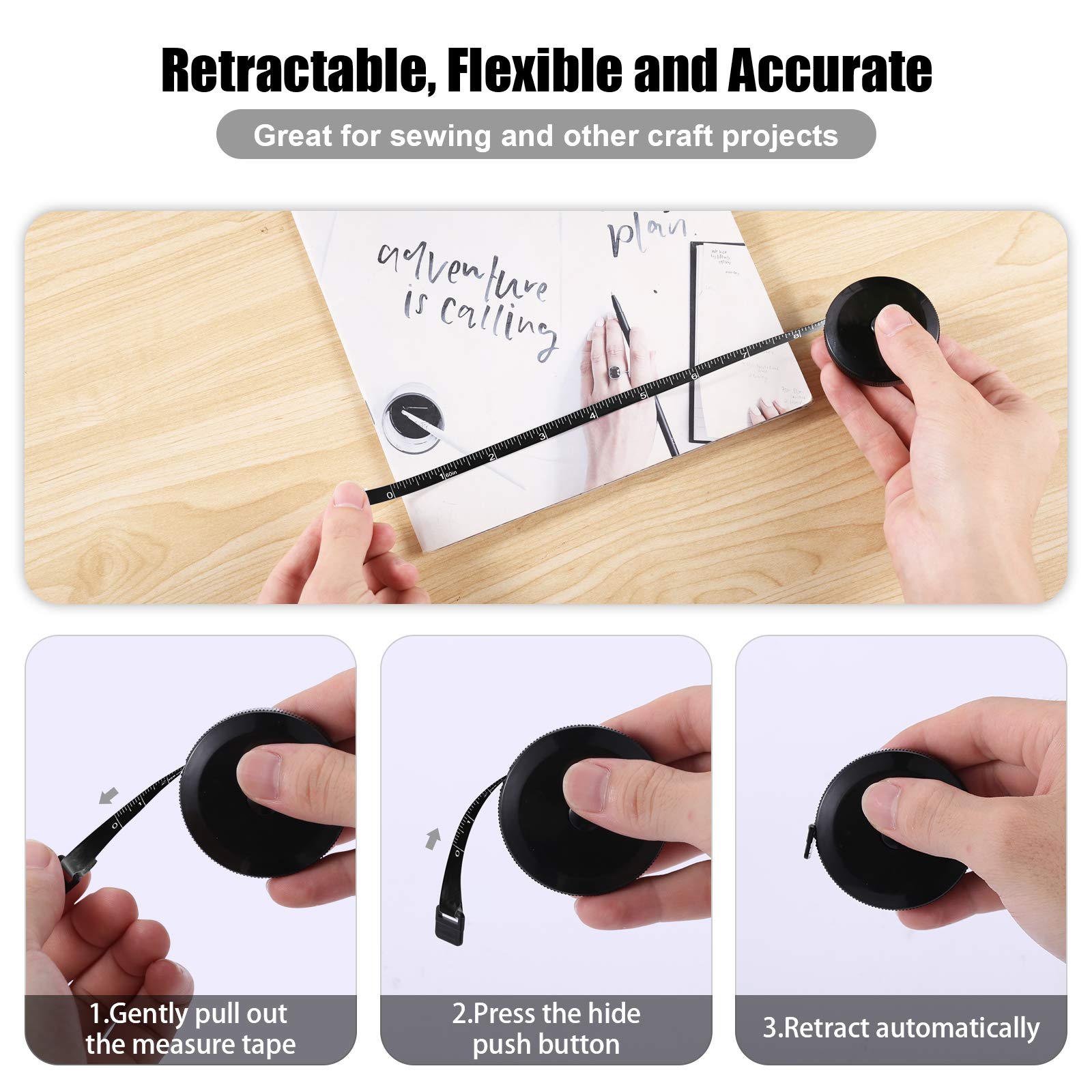 【Clear Large Calibration, Easy to Read】- Compared with some low-quality tapes, ours have large clear marks to match with the red calibration and high contrast background. The tape measure is widely used in daily life. Tailors use it too.