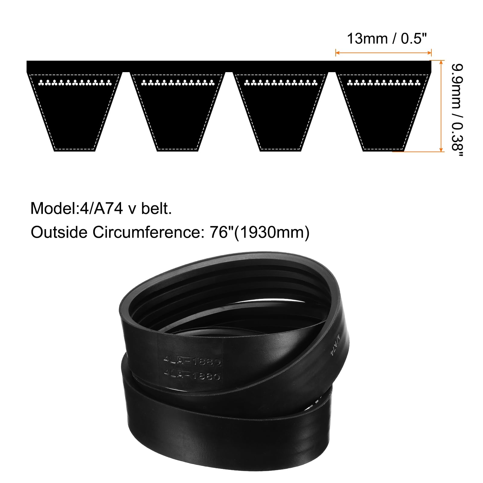 Model: 4/A74 or 4/4L760 Banded V Belt, 4 Banded. Inner Circumference: 74" (1880mm); Outside Circumference: 76" (1930mm).