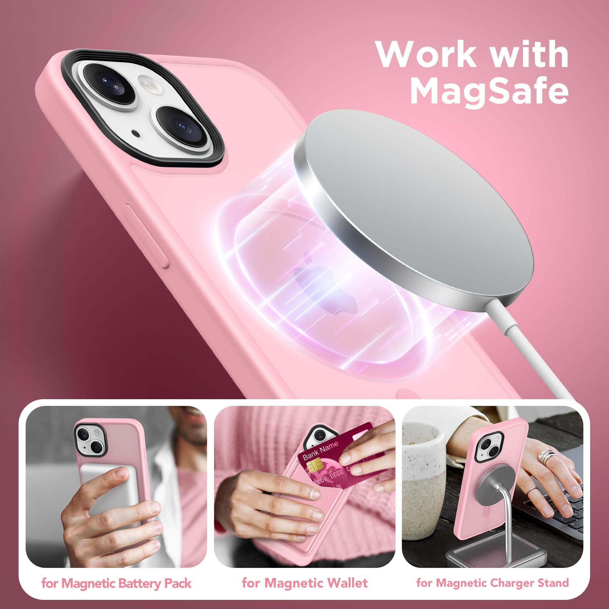 【Compatible with MagSafe】This iPhone 14 phone case has a built-in magnetic ring. 48 strong N52 magnets are evenly distributed, magnetic strength is 4X stronger than other case. It can be perfectly and safely aligned with Mag Safe and other QI-certified chargers to achieve safe and fast wireless charging. It can be firmly and securely connected to all Mag Safe accessories, such as magnetic wallet, charger, battery pack, car mount, and will not fall off no matter how rotated or shaken.