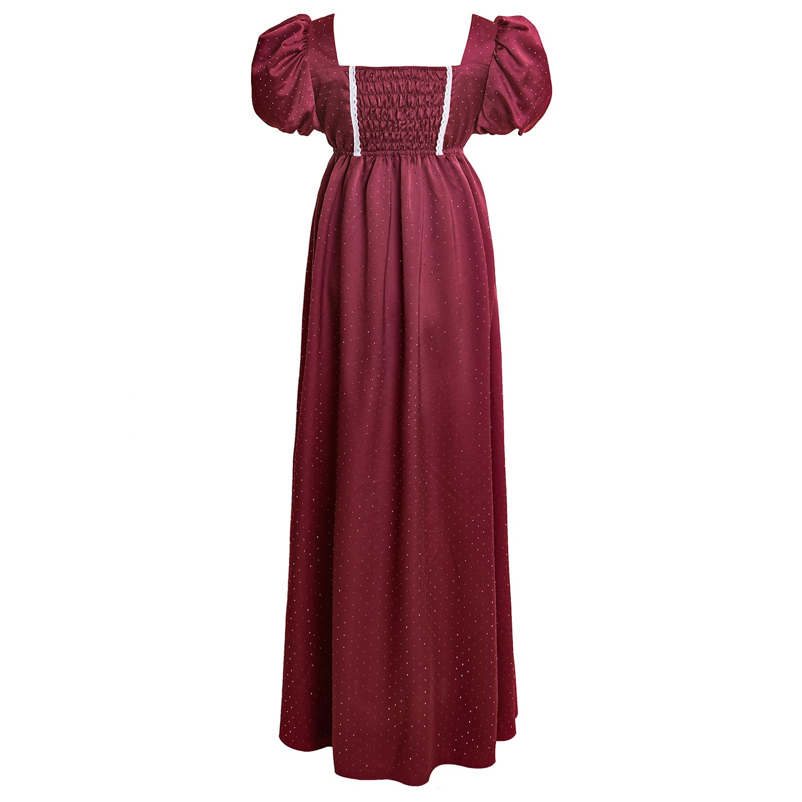 Package included - 1* regency dress; womens short puff sleeve regency dress 1800s vintage dress wine red victorian ball gown.