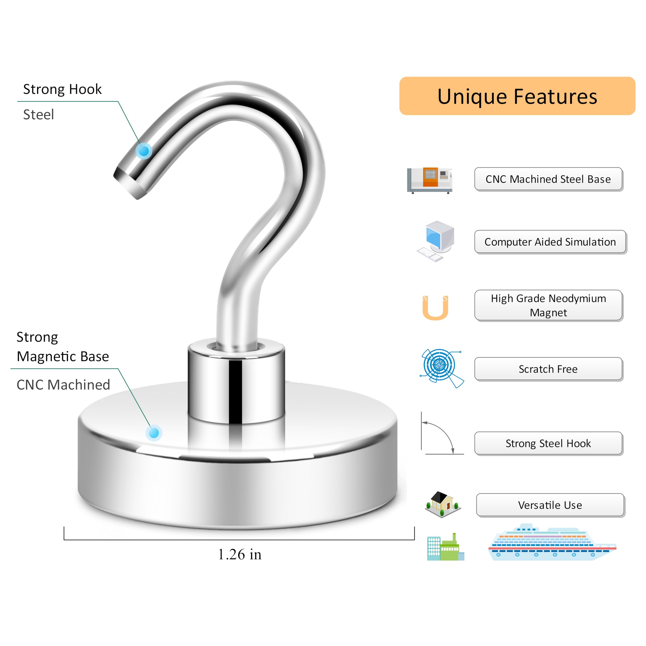 Durable Metal with Anti-Rust Finish Each magnet hook features a 3-layer plating for extra durability, rust resistance, and a sleek mirror-like finish. These metal hooks maintain strength and shine even in humid environments, making them reliable for long voyages.