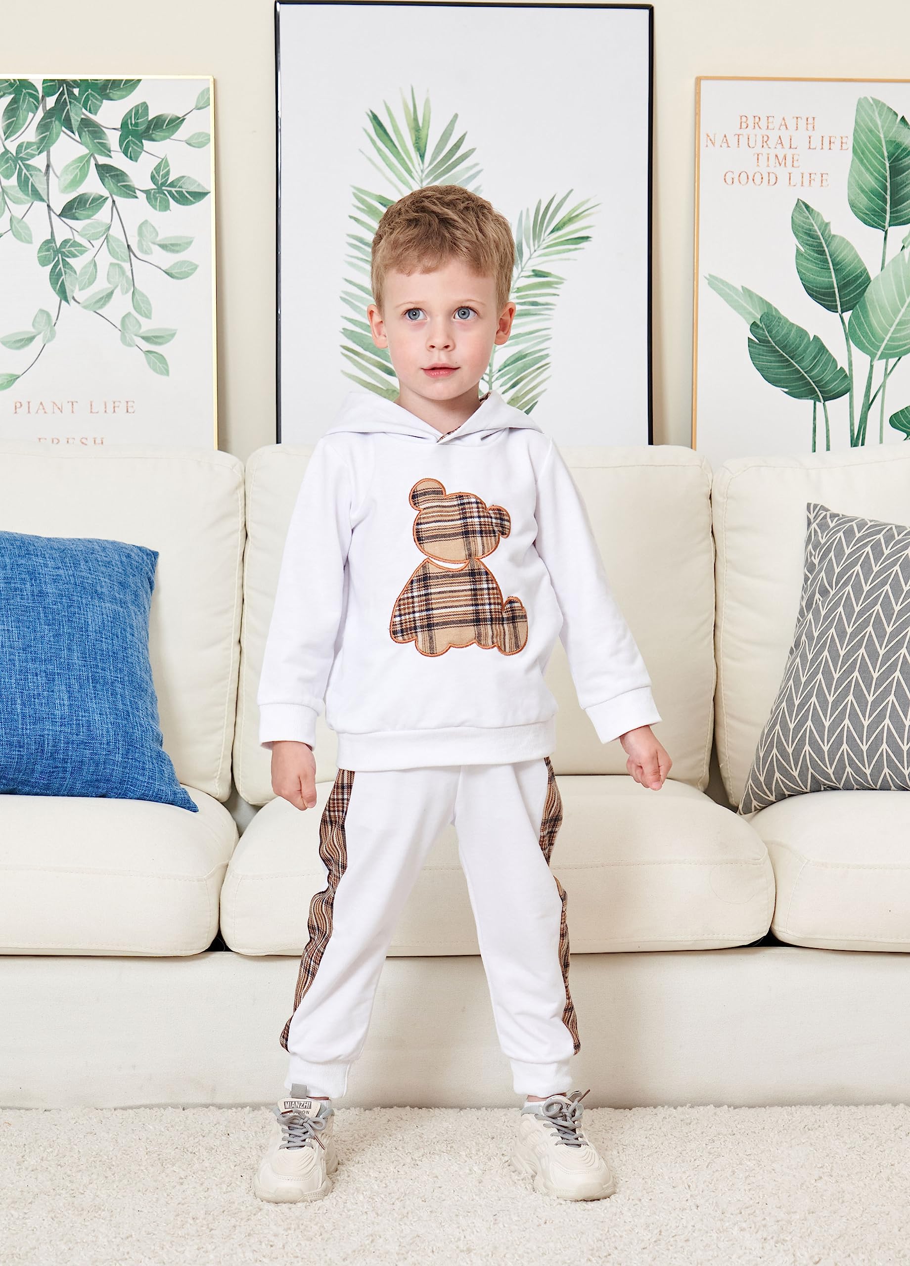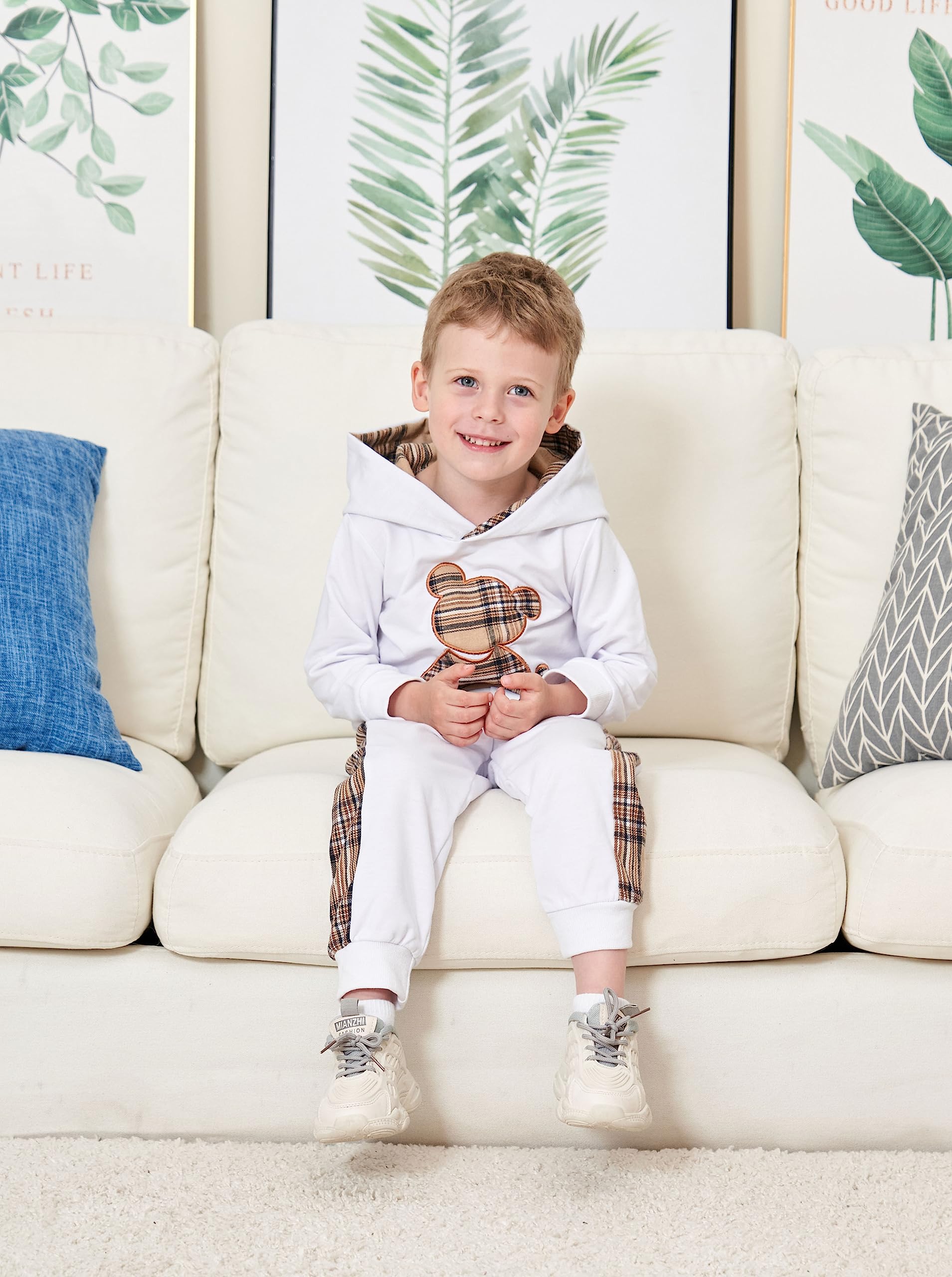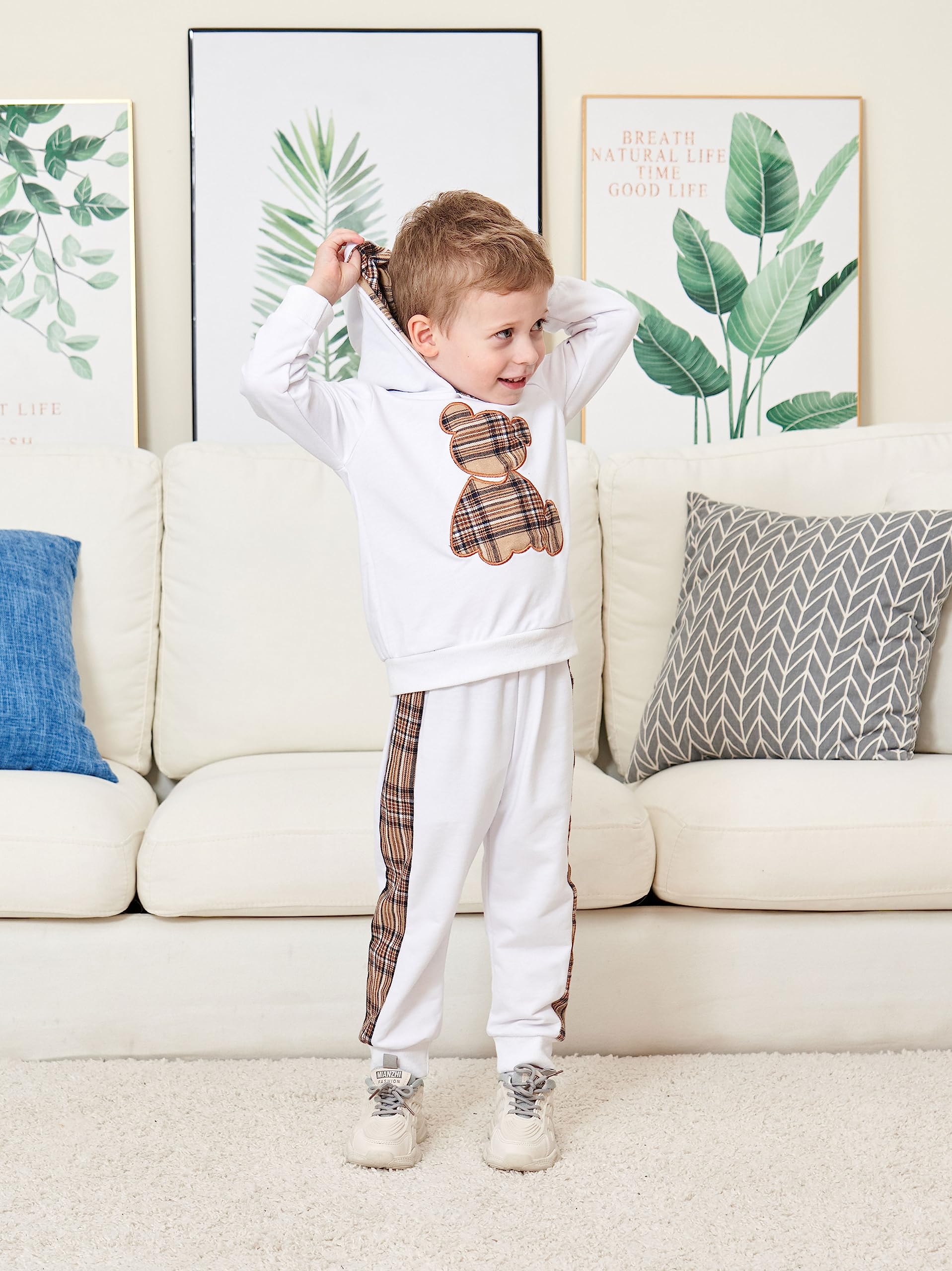 Occasion: Spring / Autumn / Winter outfit. Boy's bear plaid patchwork hoodie set, perfect for casual, everyday wear, playing outside, parks, sporting events, parties, dinners, family days, holidays, birthday , travel. Your baby boys wears it and does not want to take it off.
