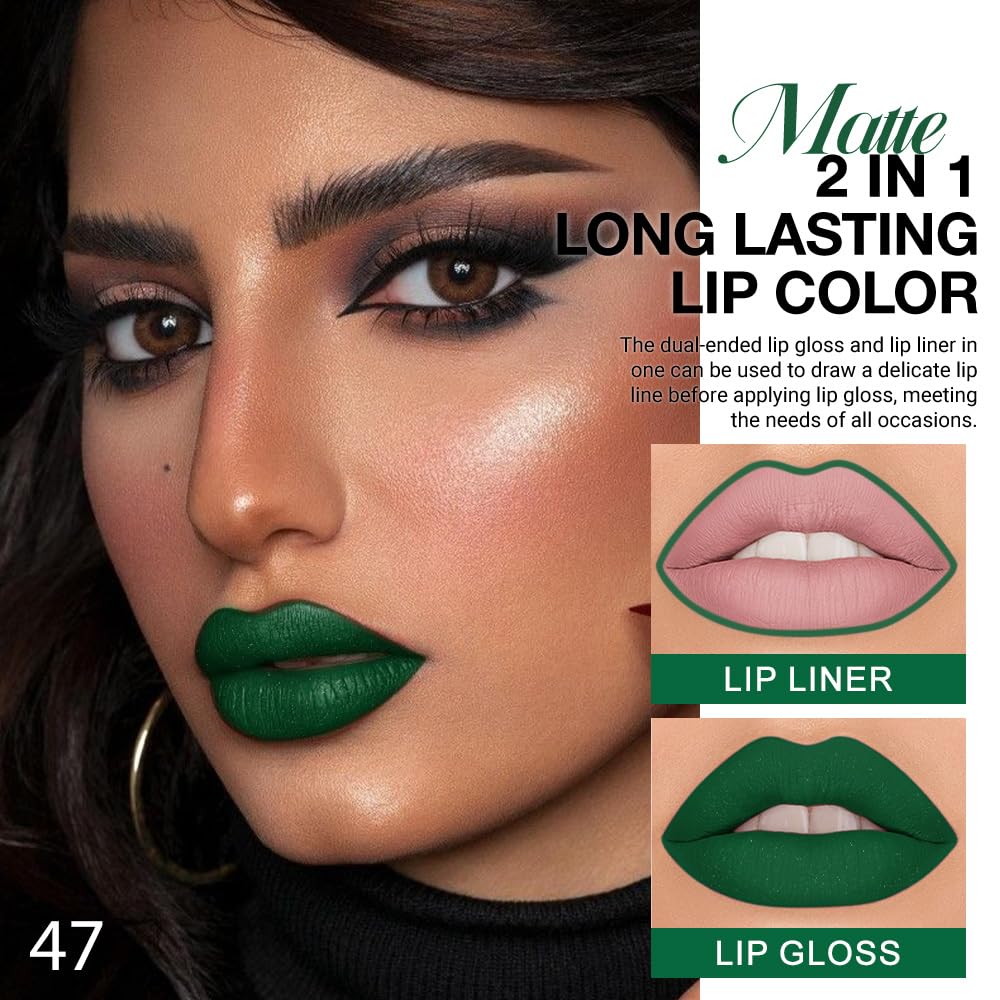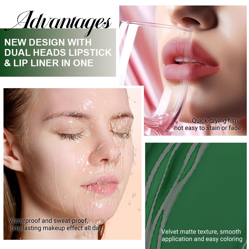 【2 IN 1 Lip Liner & Liquid Lipstick】The double ended design made you can use lipstick and lip liner on both ends. New design with dual heads lipstick & lip liner in one, for draw delicate lip line before applying lipstick. It combines lip line and liquid lipstick and makes double-end lipstick more perfect,meets the need of all occasions.
