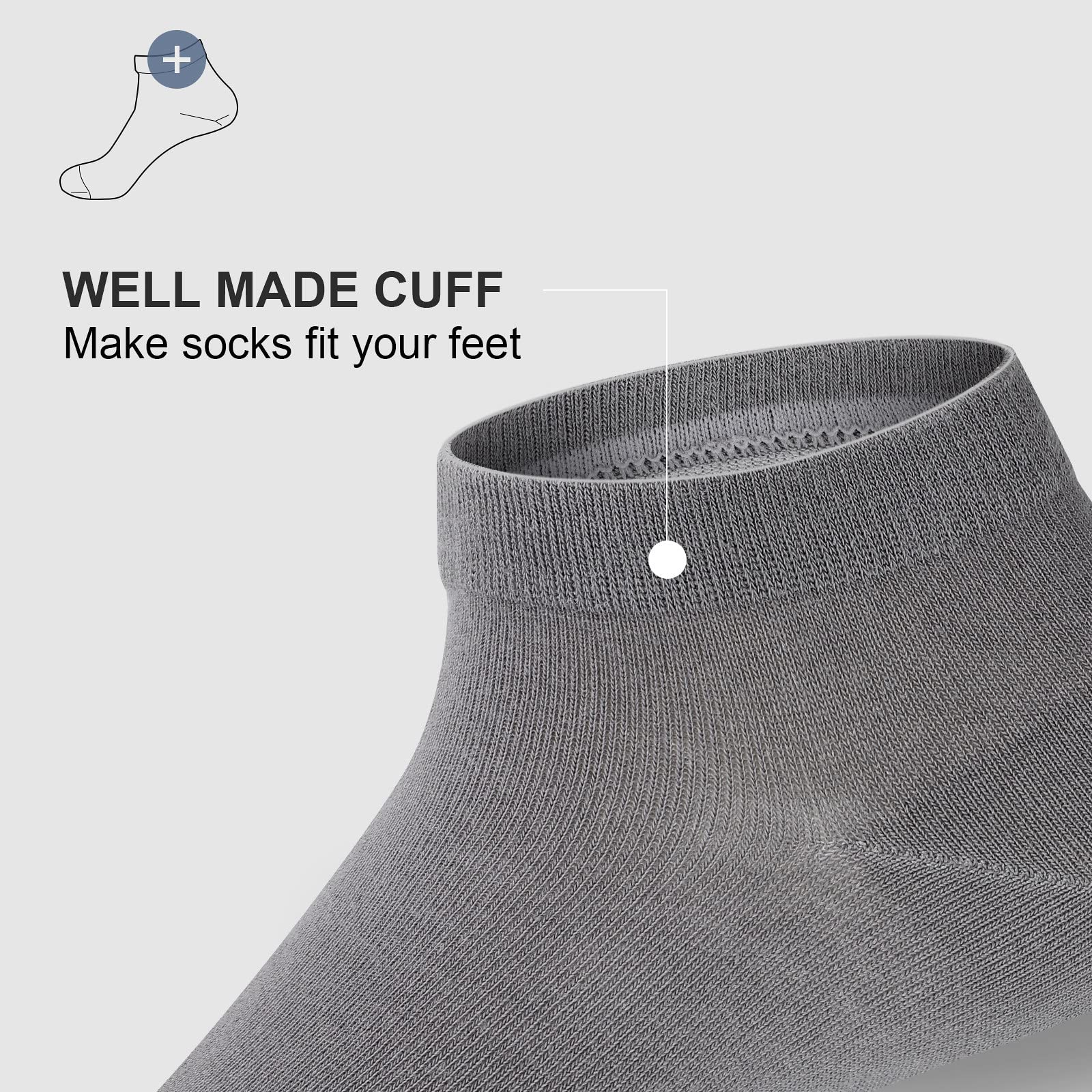 Well Made Cuff: The Ergonomically designed well made cuff make socks fit your feet perfectly, will not be tight and neither loose.