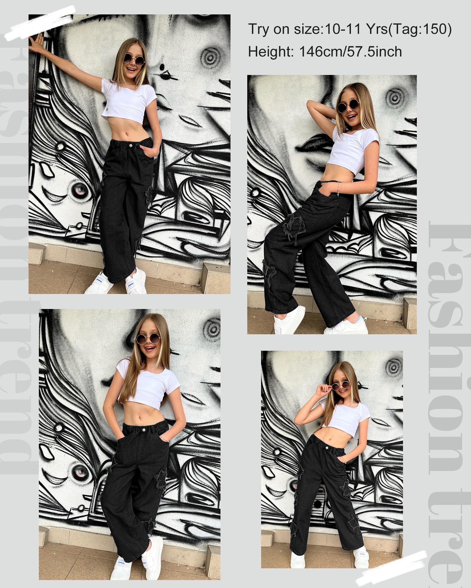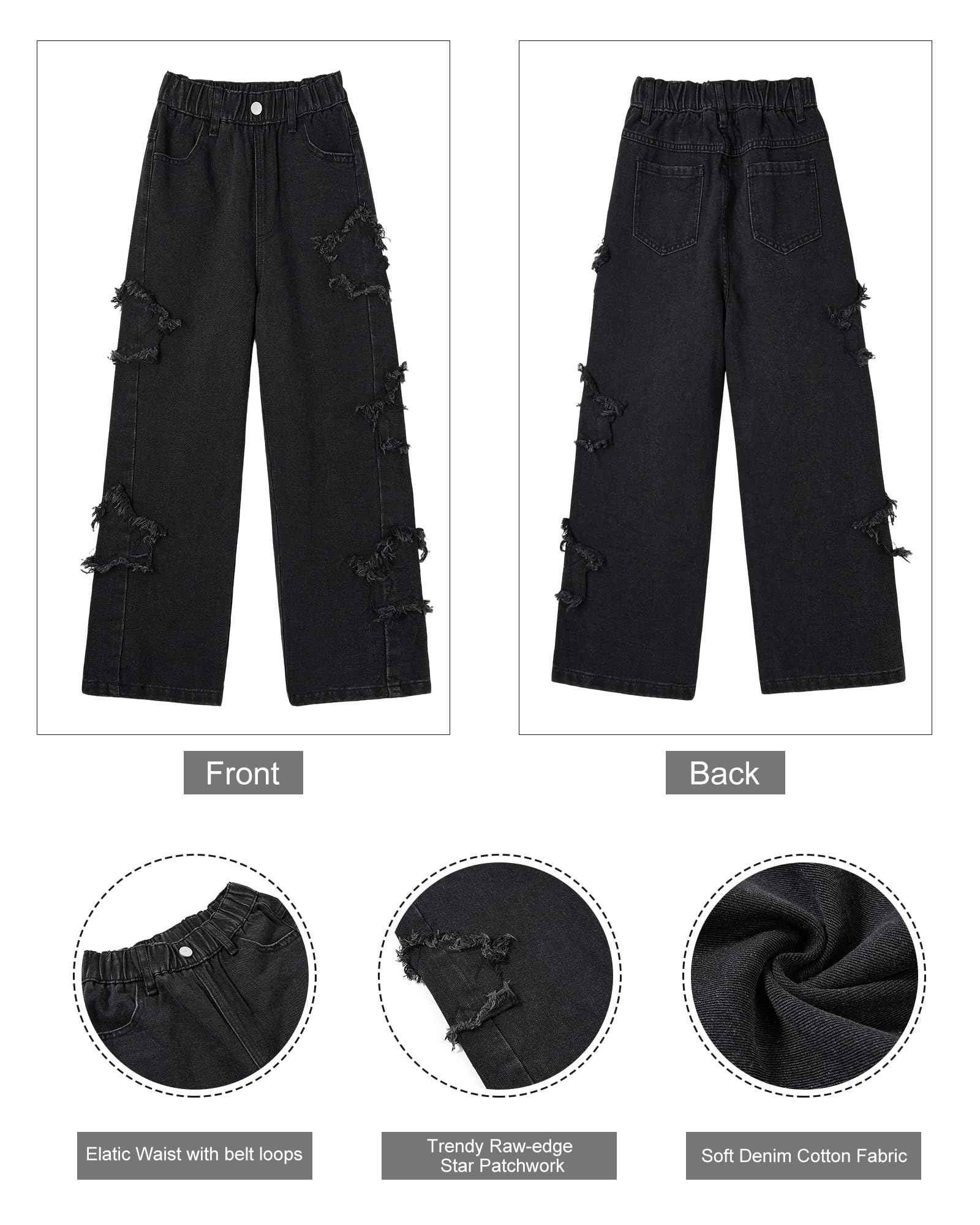 Features: Wide-leg jeans for girls are designed for both comfort and a modern look. loose fit, full elastic waist for easy on and off, providing a secure. star patch details, adding a touch of sparkle and fun to any outfit