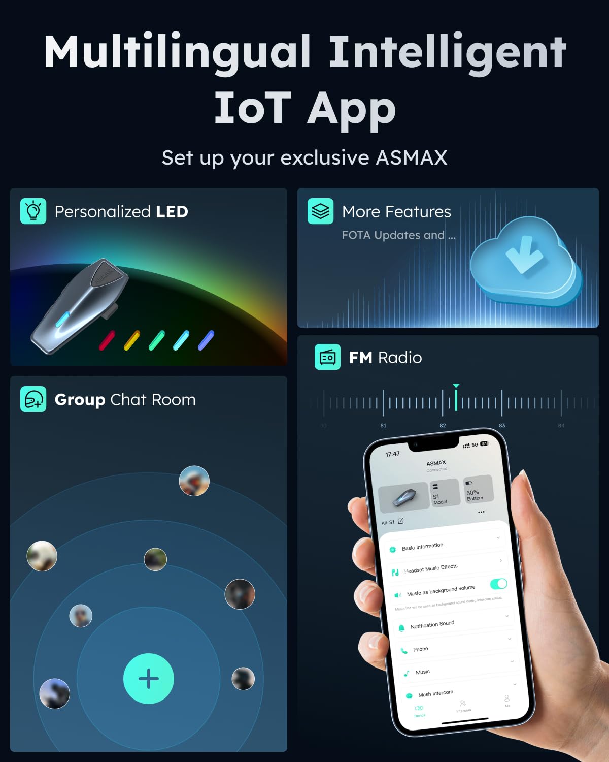 Cross-Brand & CloudTalk Intercom: The S1 helmet communication system pairs effortlessly with headsets from other brands. Activate CloudTalk Mode in the ASMAX WORLD App to break Bluetooth limitations, connecting up to 50 riders via a stable, wide-range network—ideal for large group rides and touring.