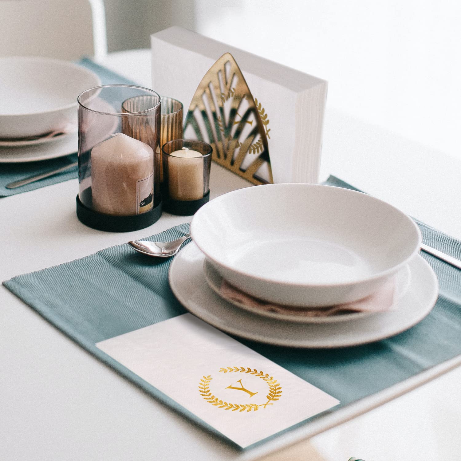 Package Includes: 200 packs of monogrammed guest napkins, which are printed with gold foil letter Y and wreath pattern; these delicate disposable hand towels are abundant in quantity to meet your various daily or event party needs