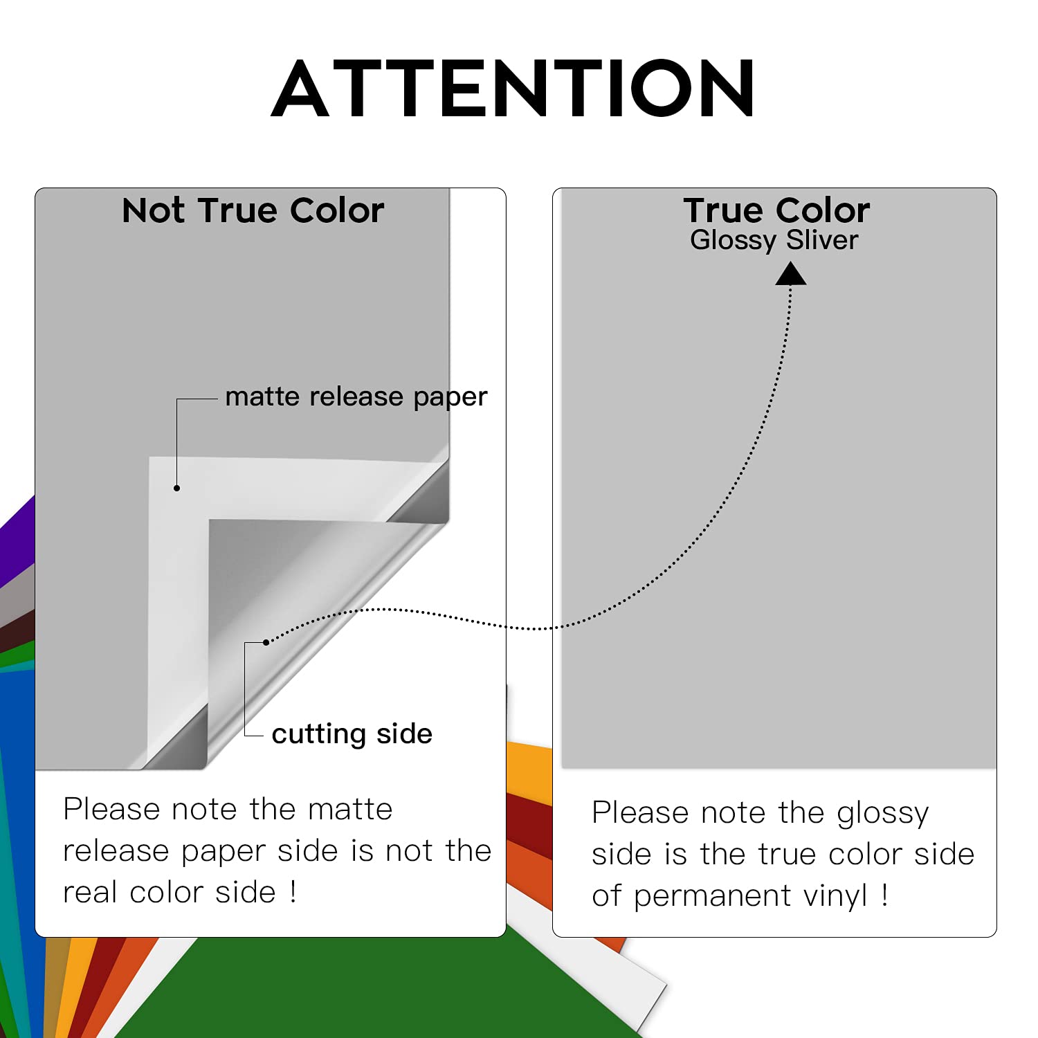 👕 Clear PET Backing 👕 - NOTE: The real color of our vinyl is the opposite of pet backing! Say goodbye to paper backing, which sticks to mat and ruin your design. Using our silver permanent vinyl with PET backing, you will not need to clean your mat and worry about project damage. No more cheap paper backing ruining and separating from the vinyl for cutting machine in the cutting process. Our PET backing is the ultimate answer to your woes.