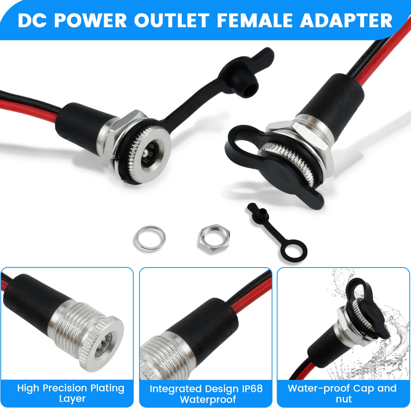 【Package Contents】: 3Pcs DC-099A DC power female panel mount connectors, 3Pcs 5.5 × 2.5mm male pigtail DC power connectors, 3 sets of dust caps and gaskets.