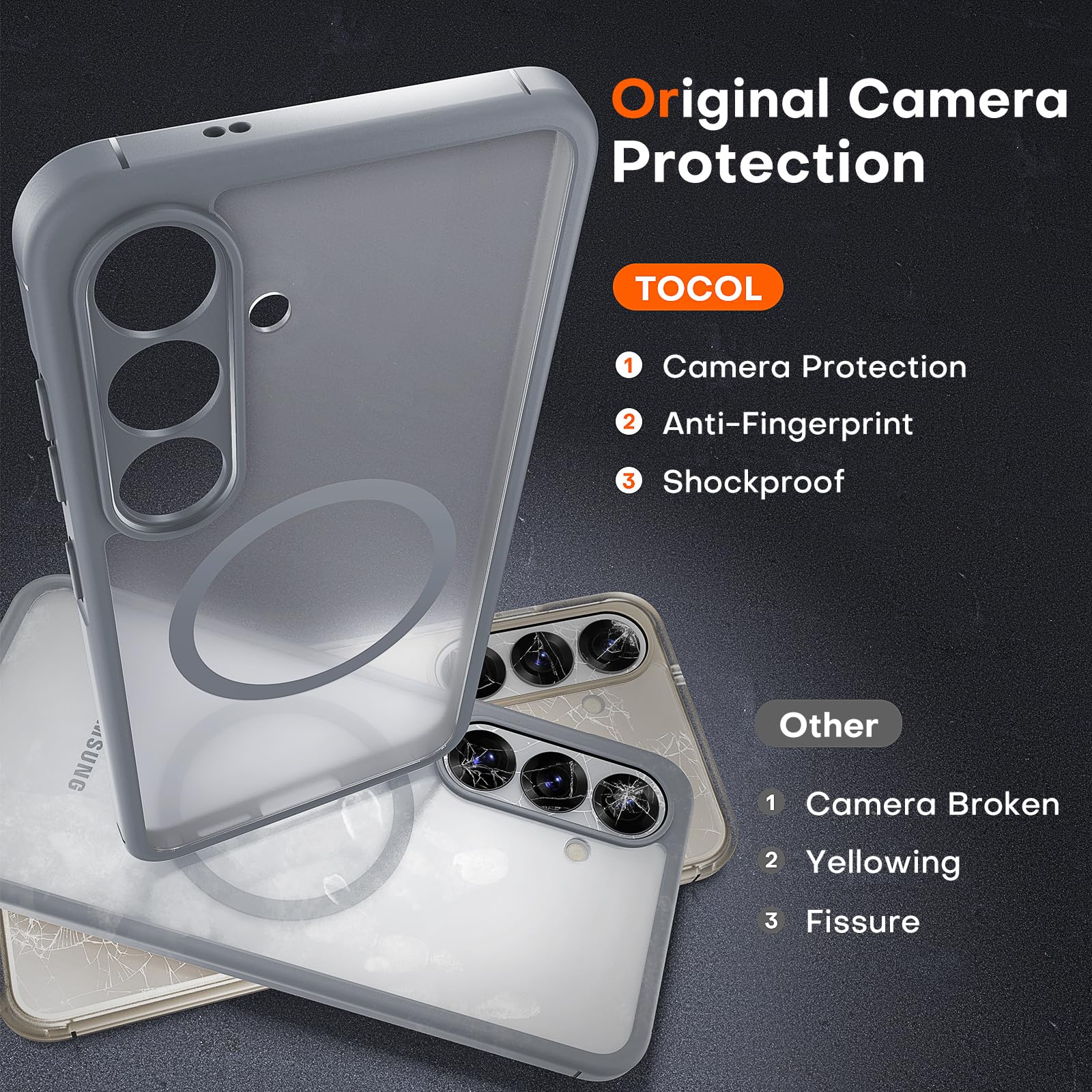 [All-in-one Front and Rear protection]: TOCOL phone case upgrades the camera surround the camera frame is 0.8mm higher than the camera lens for Samsung S25 Full Camera Case. Which protects the lens while avoid hiding dust, retaining the original shooting effect of the camera, Effectively protect the screen from scratches, provide full protection for your new phone.