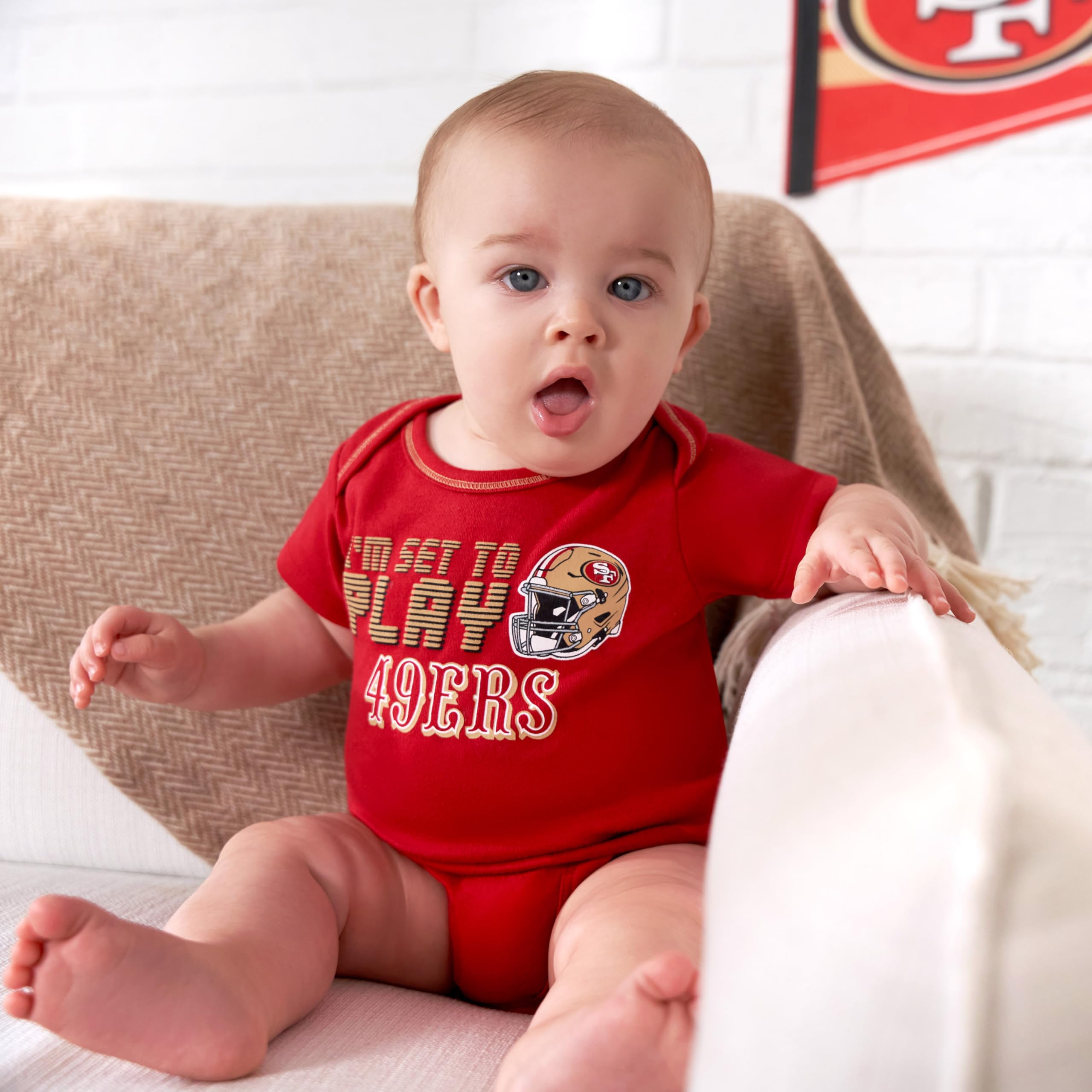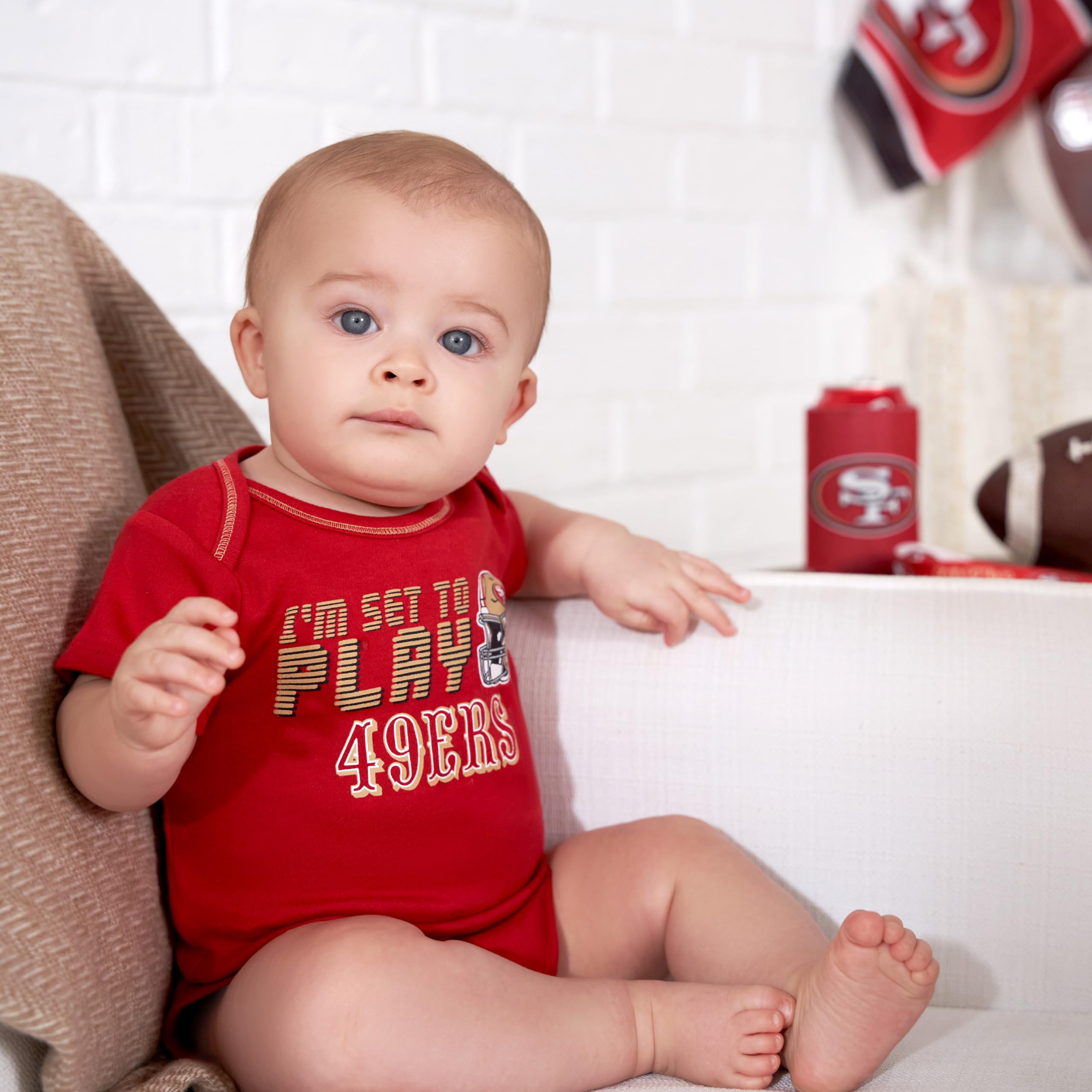 Description Itβs time for the whole family to cheer on the team! These officially licensed NFL bodysuits are the gear your little one needs for game day. Your baby will stay comfy throughout the entire game (and day!) in the cotton/poly interlock of these NFL baby bodysuits. The bodysuits feature expandable lap shoulder necklines to keep changes comfortable and quick. The bodysuits feature a variety of designs and patterns that show off babyβs team pride. The bottom snaps are positioned for convenient diaper changes, so taking breaks from the game donβt last longer than they need to. These baby boysβ bodysuits are a great choice for warm or cool game days, as they may be layered over or worn all on their own. These bodysuits are machine washable for your convenience. Show your team spirit by dressing the whole family for the upcoming season!