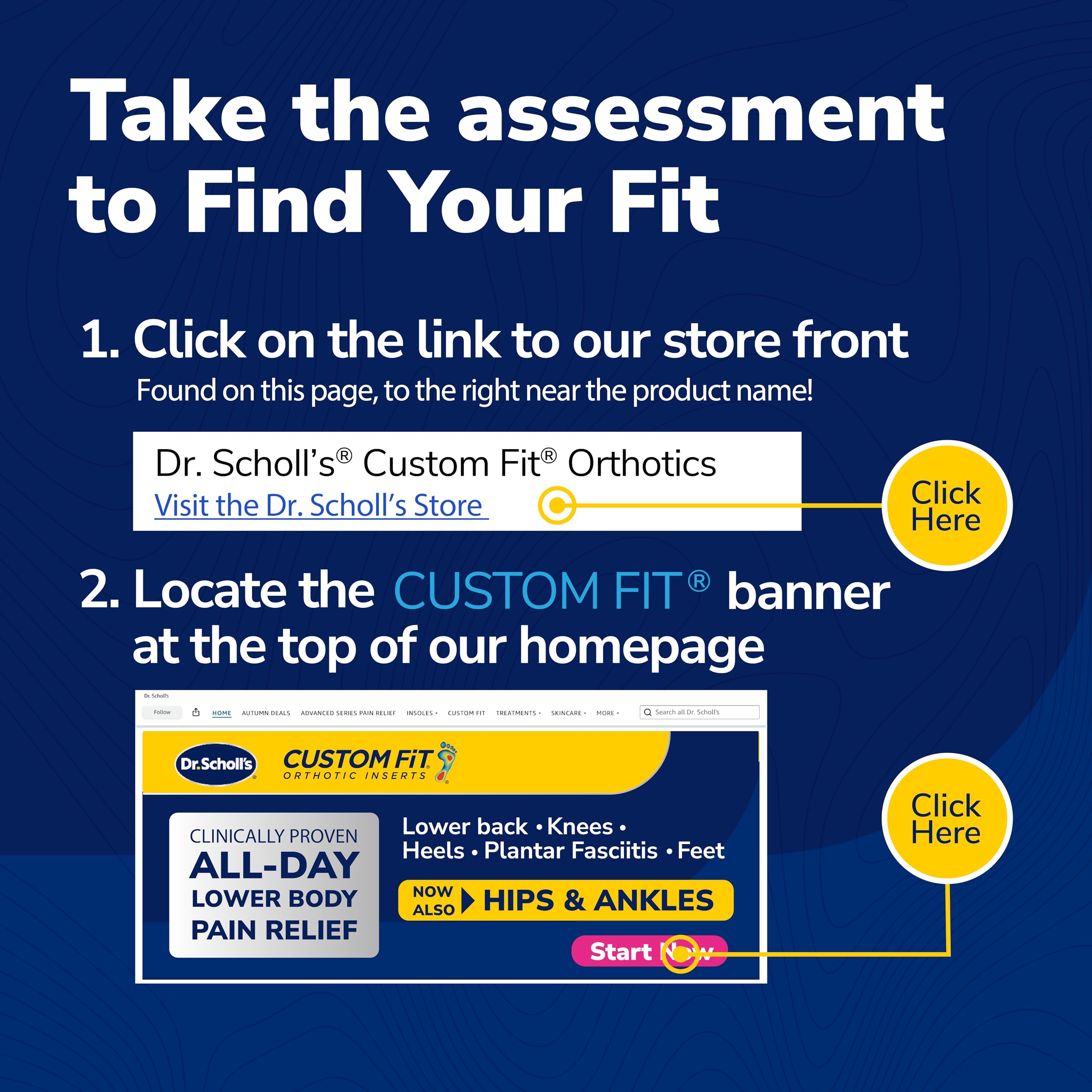 Dr. Schollβs Custom Fit Orthotic Inserts are a customized solution for relief, comfort, and support from the most recognized name in footcare for over 100 years! Take the Guesswork Out of Getting Pain Relief, Comfort and Support. Get clinically proven pain relief including lower back pain, knee pain, plantar fasciitis, heel pain, achy feet and now hip and ankle pain. Plus support for all arch types including flat feet. These insoles are customized for your feet utilizing your arch type, body weight and shoe size, so they relieve pressure and deliver more targeted arch support versus one size fits all insoles. A simpler and more affordable orthotic solution than podiatric prescribed orthotics for pain from daily activities. Join over 20 million users and find your fit to get the cushioning and support your feet need!