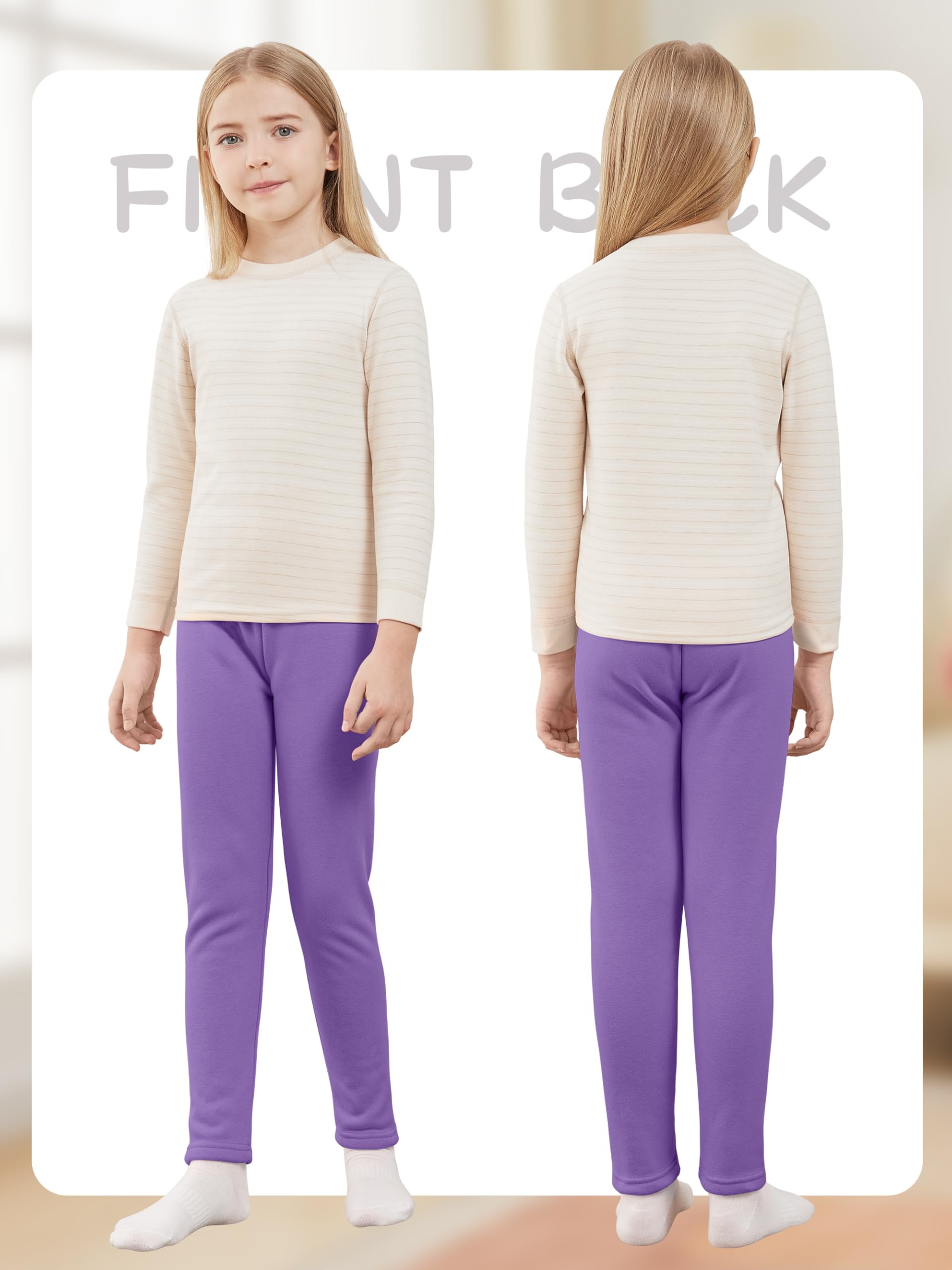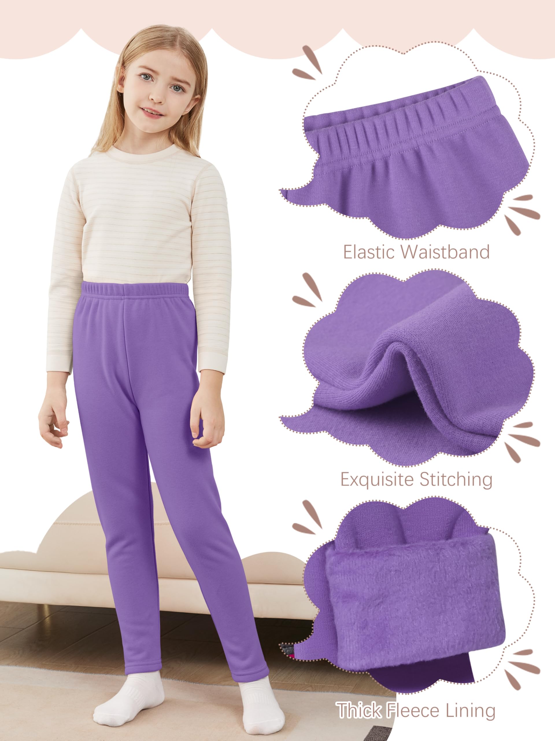 FLEECE LINED LEGGINGS: The outer layer of these warm leggings for girls is made of pure cotton and they are lined with fleece, making them elastic, soft, comfortable, and with excellent warmth.