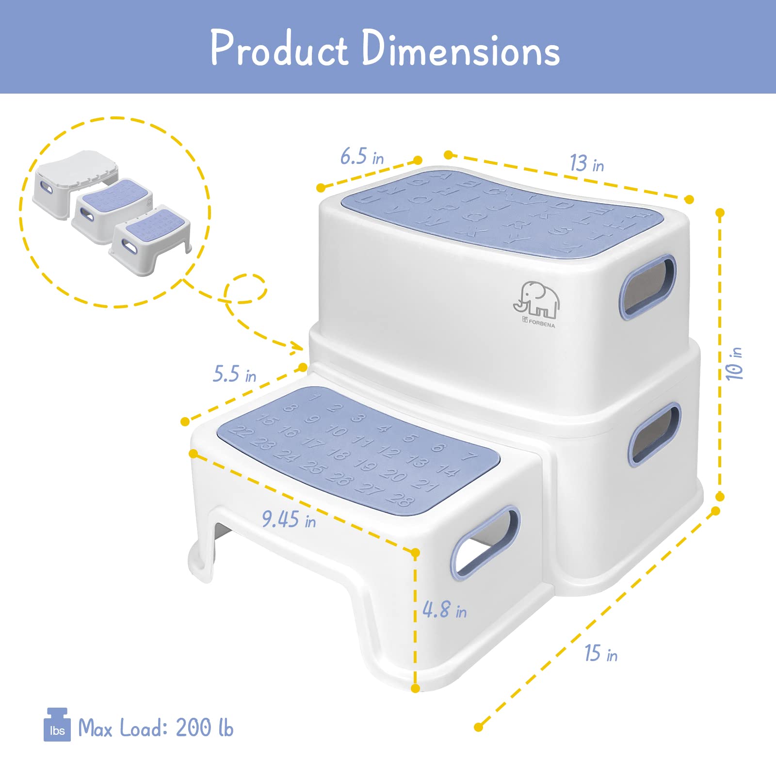 【Waterproof and Easy to Clean】The toddler step stool is water resistant and you can use it in shower room for kids. The 2 step stool for toddlers is easy to wipe down with damp cloth if it gets dirty.