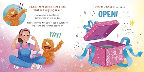 #1 NEW YORK TIMES BESTSELLER • Ms. Rachel brings her signature teaching style to her very first book! Children will practice more than 20 important milestones—including gestures and speech—and sing their favorite songs as they help Ms. Rachel find a special surprise just for them. Ms. Rachel is looking for something very special, and she needs your help finding it! Using educational techniques from her beloved YouTube channel and threading them into an interactive story, Ms. Rachel shows kids and parents alike fun ways to engage and play! While Ms. Rachel invites readers to open a series of imaginary boxes to see what’s inside, she guides them through exercises like pointing, waving, and call-and-response. Fans will recognize characters from their favorite videos, and everyone will join in on singing the lyrics to songs like “The Wheels on the Bus.” After the adventure ends, parents and educators can use the helpful tips included in the back of the book to assist with brain and language development. Kids are sure to read and reread this new classic! There’s plenty to keep them delighted and engaged with their favorite teacher. And, as always, she makes sure they know just how special they are!
