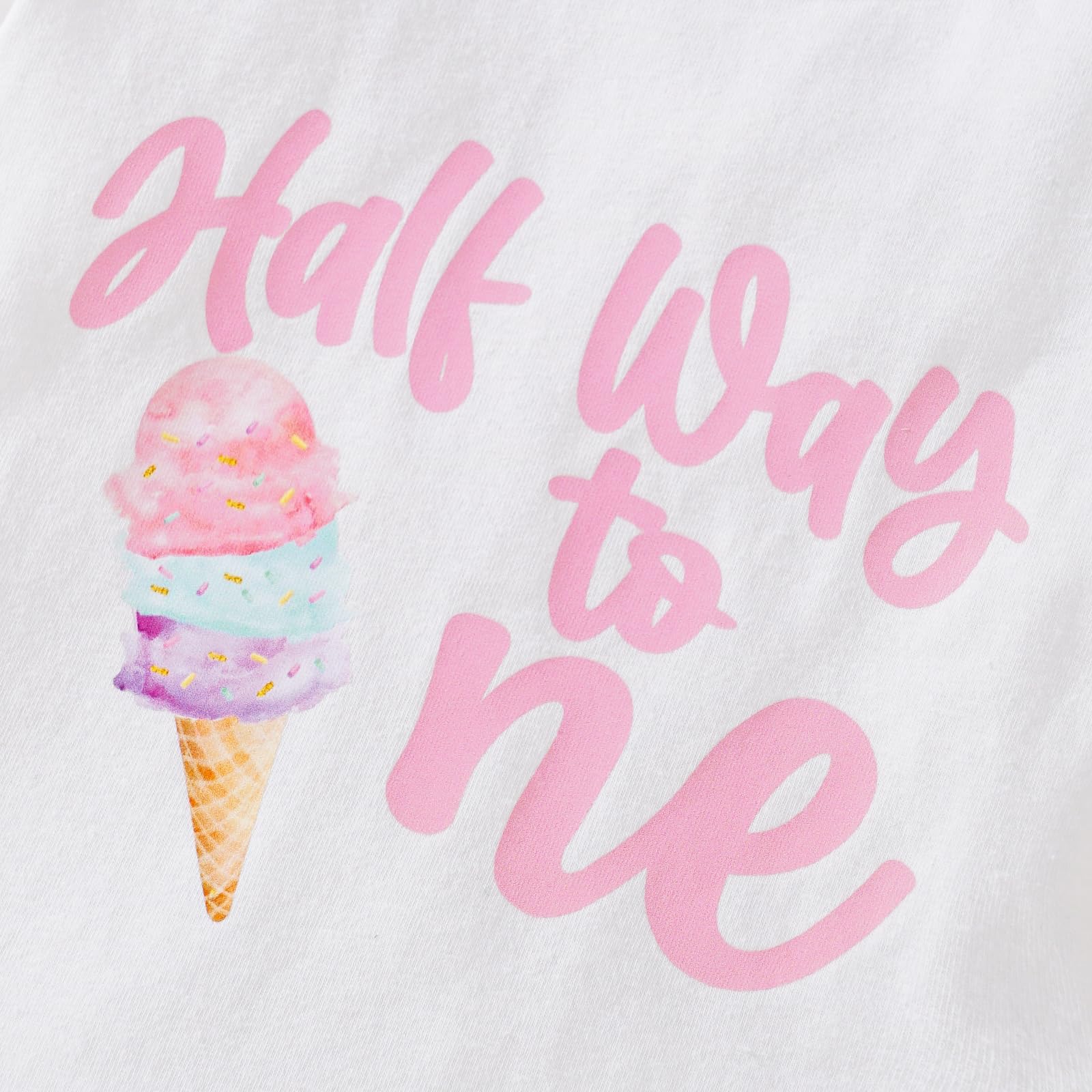 Design: stylish Half Way to One, with cute donut shorts, fun Half Way Around the Sun, with Sun print shorts. Best Gift for Darling's first birthday!