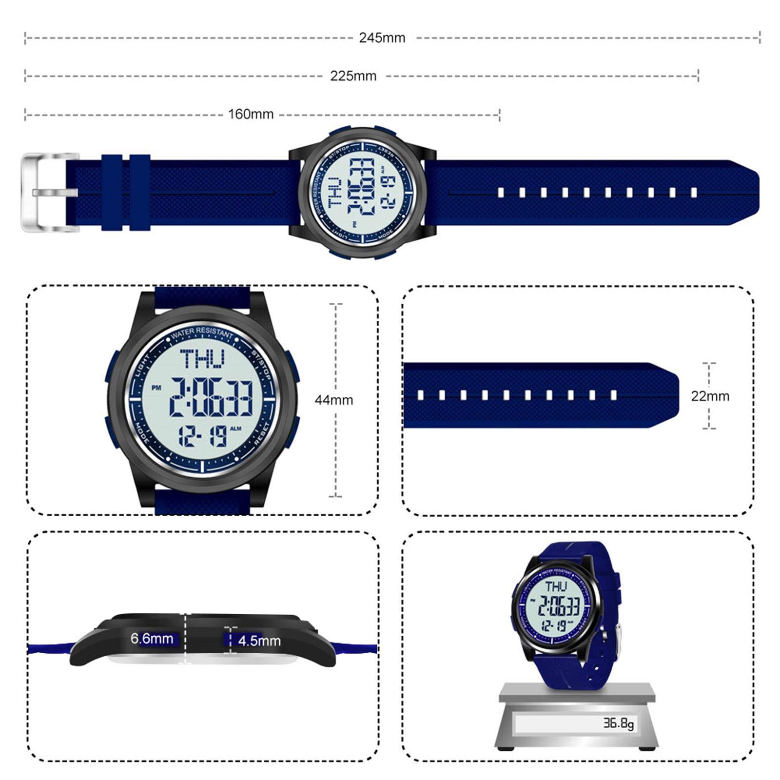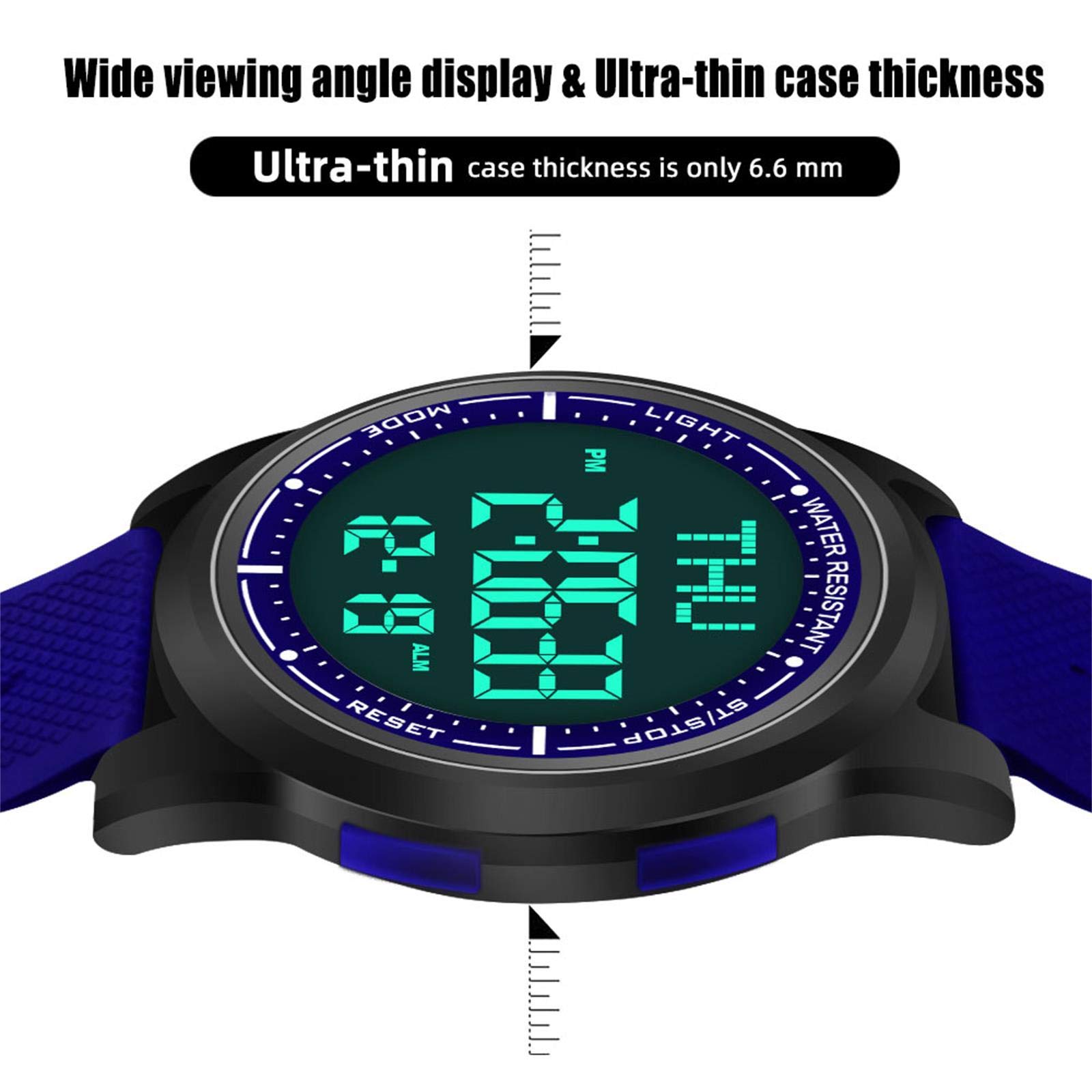Description Ultra-Thin Digital Watch – Sleek, Waterproof & Multi-Functional Versatile & Stylish Design Designed for both men and women, this ultra-thin (6.6mm) digital watch combines modern minimalism with high functionality. Its sleek case and textured band offer a lightweight, comfortable fit for all-day wear. Crystal-Clear EL Backlight Display Features a wide-angle digital screen with bright EL backlight, ensuring effortless readability day or night. Perfect for low-light conditions, workouts, or travel. 50m Water Resistance – Swim & Shower Safe Built for active lifestyles, this watch is waterproof up to 164ft (50m), making it ideal for swimming, showering, and rainy weather. Smart Multi-Function Features 12/24-hour time format Date & day display Alarm, stopwatch, and countdown timer Dual time zone support (great for travelers) Durable & Comfortable for Everyday Wear The scratch-resistant screen and flexible textured band ensure long-lasting durability, while the ultra-lightweight build keeps it comfortable for work, sports, or travel. Perfect for Active Lifestyles Whether you're swimming, running, traveling, or working, this digital watch keeps you on time with reliable performance and sleek style.