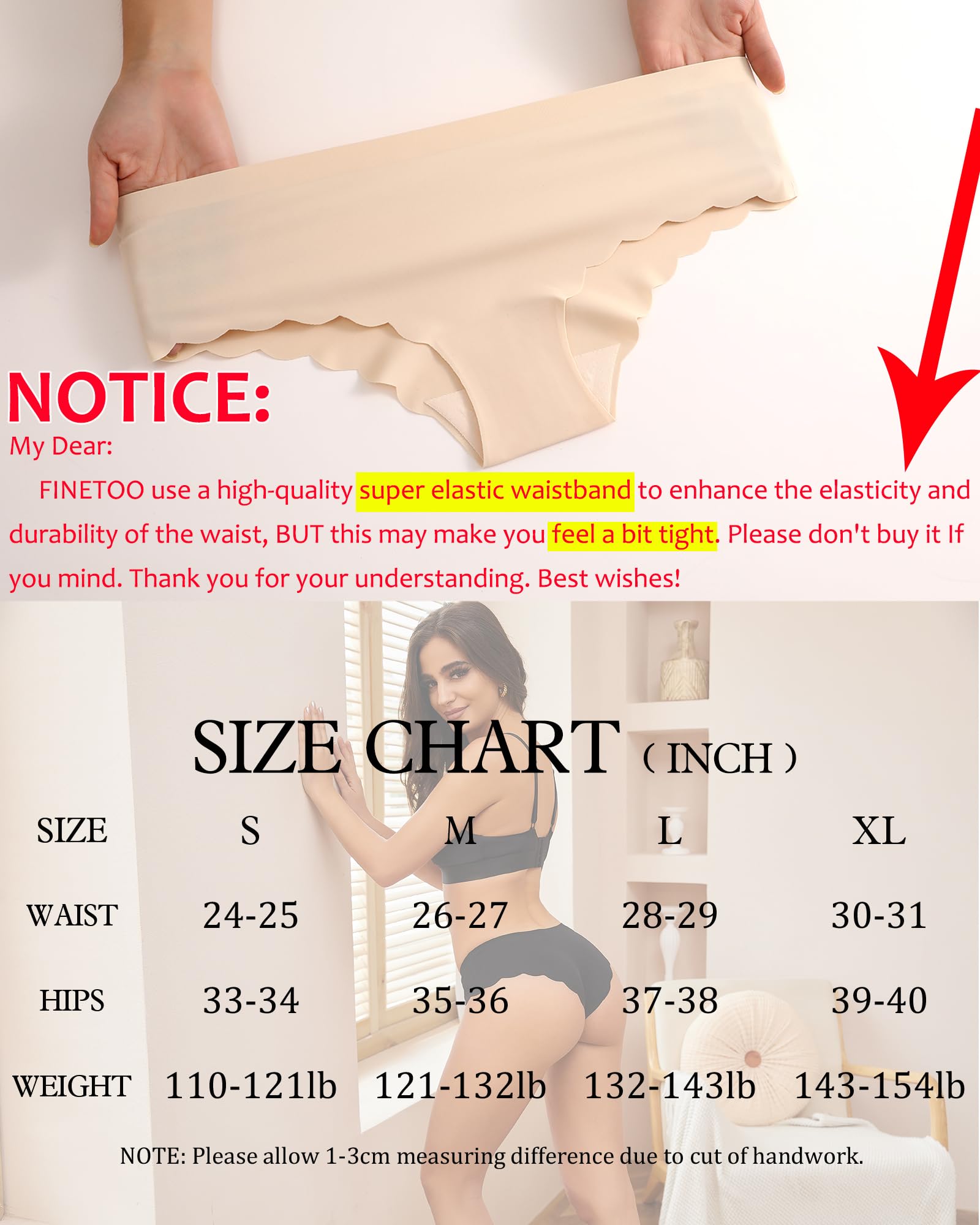 WASHING CARE&NO SHOW UNDERWEAR: In order to have no panty lines, it is glued on instead of sewn in. Which will inevitably fall apart. But you can wash on warm or cold, and dry with LOW HEAT! It can maximize the lifespan of underwear. FINETOO recommends that you change your underwear once within 3 months.