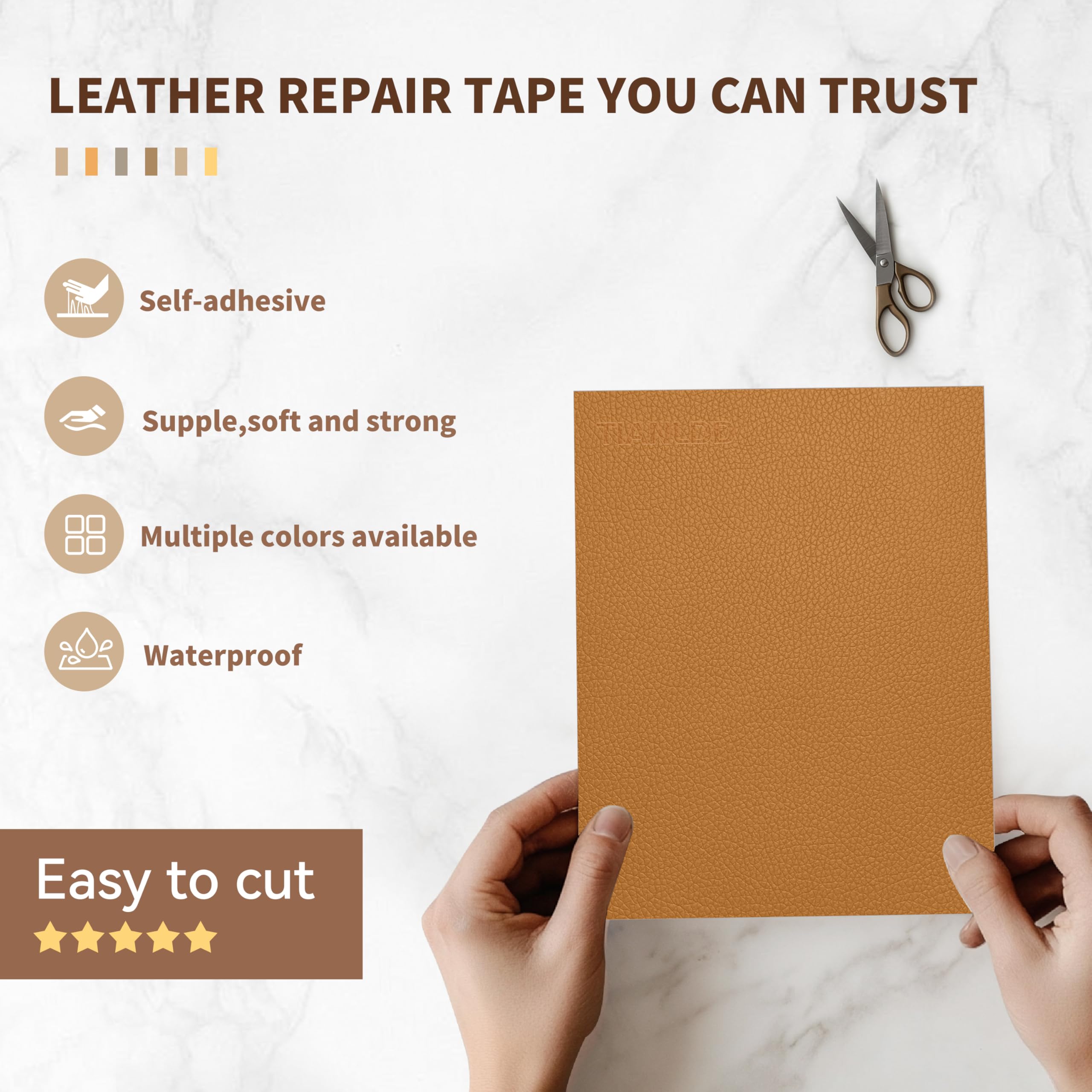 Self-adhesive & Easy to Use:Simply peel off the backing paper on the back of the leather patch tape and stick the patch on the sofa to perfectly repair all kinds of damages. The patches have strong adhesive force and soft texture, whether it is the edge of the seat, or curved uneven surface, it can be perfectly