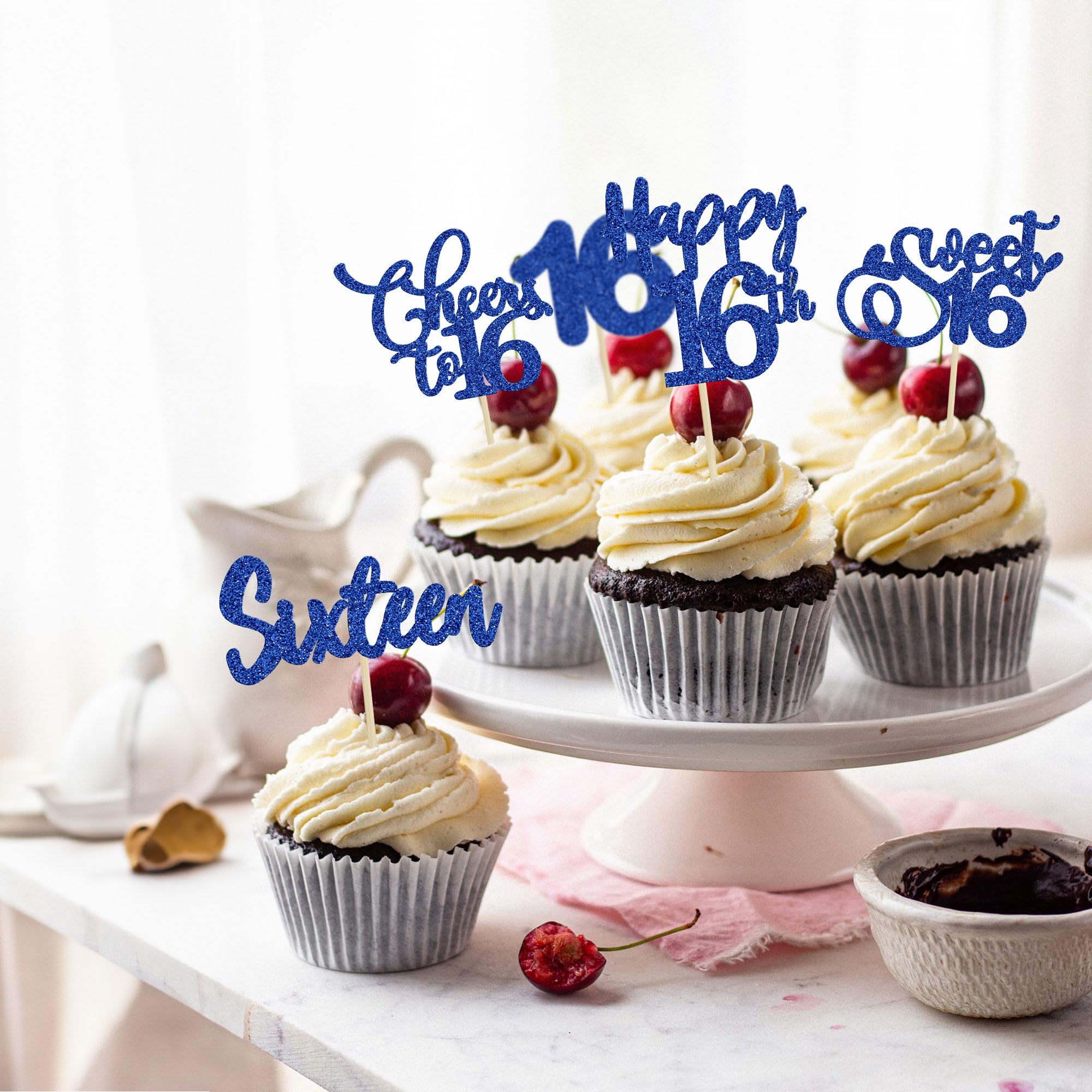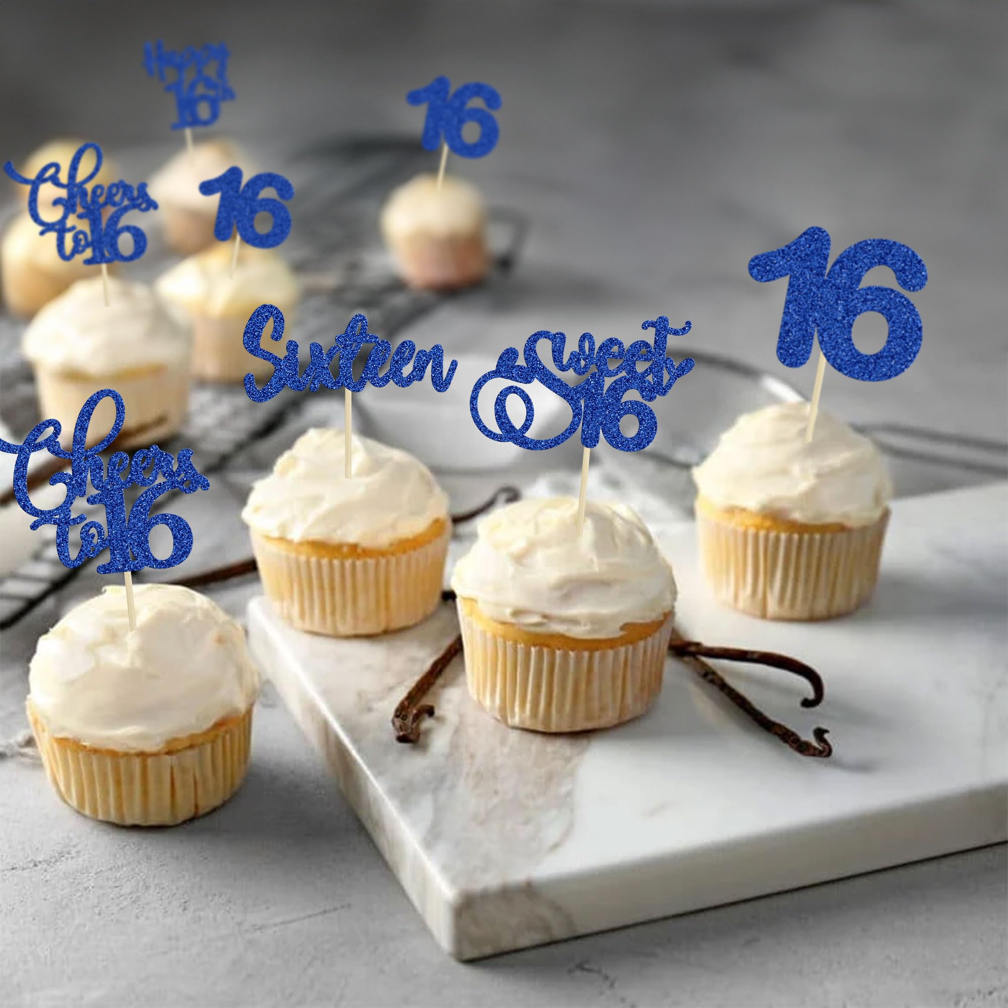 💖【No Assembly Required】: 30Pcs 16th Birthday Cupcake Toppers can put in the cake directly! These 30Pcs 16th Birthday Cupcake Toppers save your time and super easy to use. You can easily dress up your 16th theme cakes, yes! but don't stop there, put them into desserts, cookies, fruit pieces, appetizers, muffins and so much more!