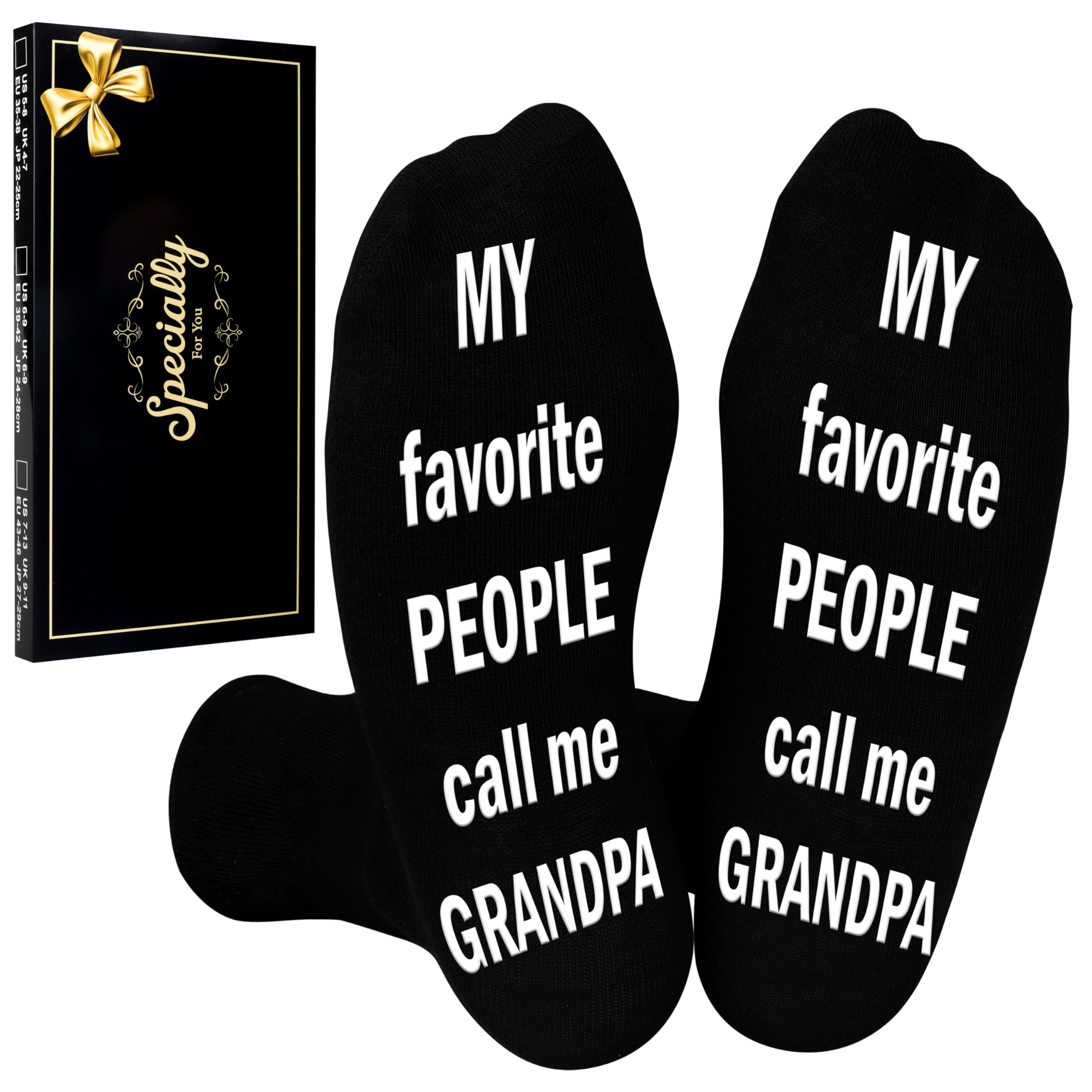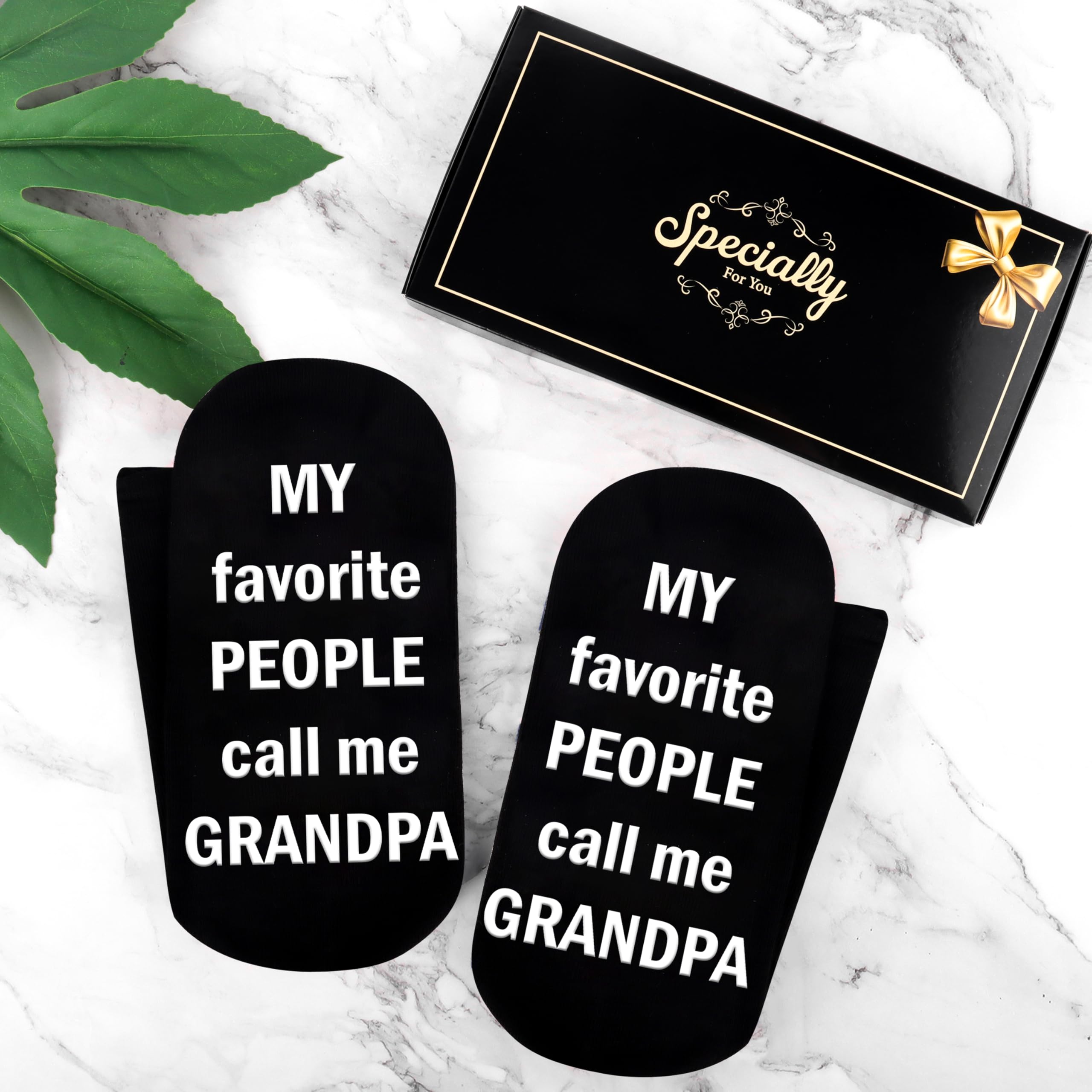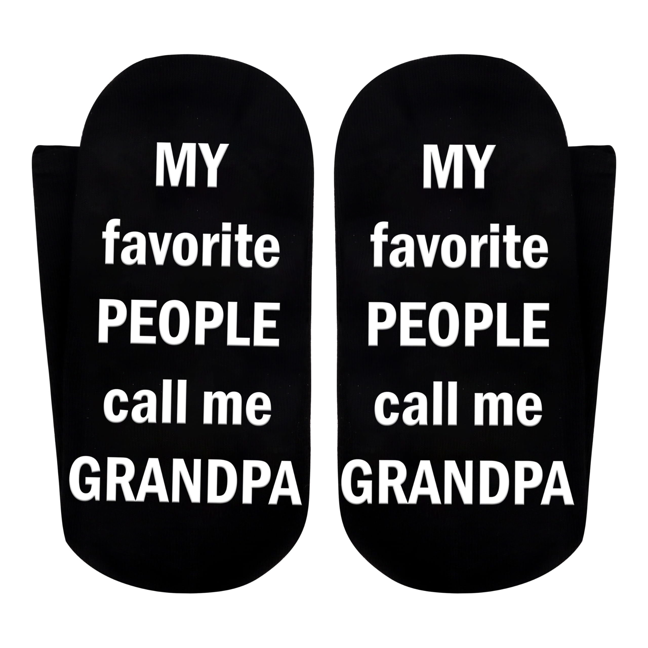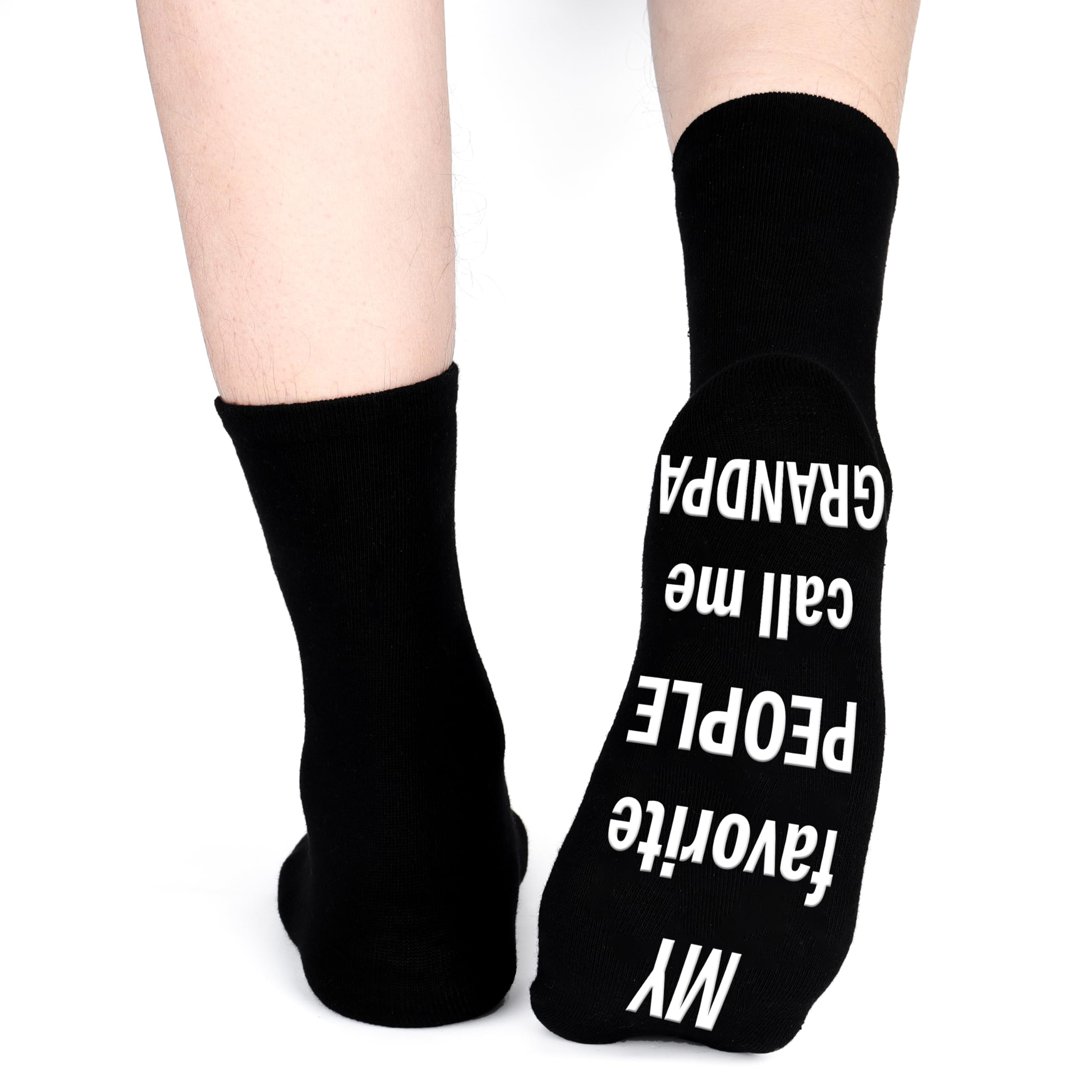 Grandpa Socks: “MY favorite PEOPLE call me GRANDP”. Funny words printed on the bottom of the socks, and the words are non-slip.