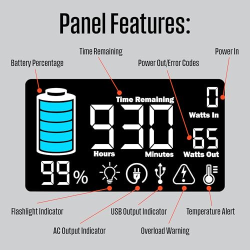 MADE FOR INDOORS AND OUT: No noise, fumes or fuel so you can use it inside for emergency backup, or convenience when you don’t want to deal with hard to reach wall outlets or extension cords; Get quiet, grab-and-go power for camping, tailgating, roadtrips and more; Solar panel ready for off grid use