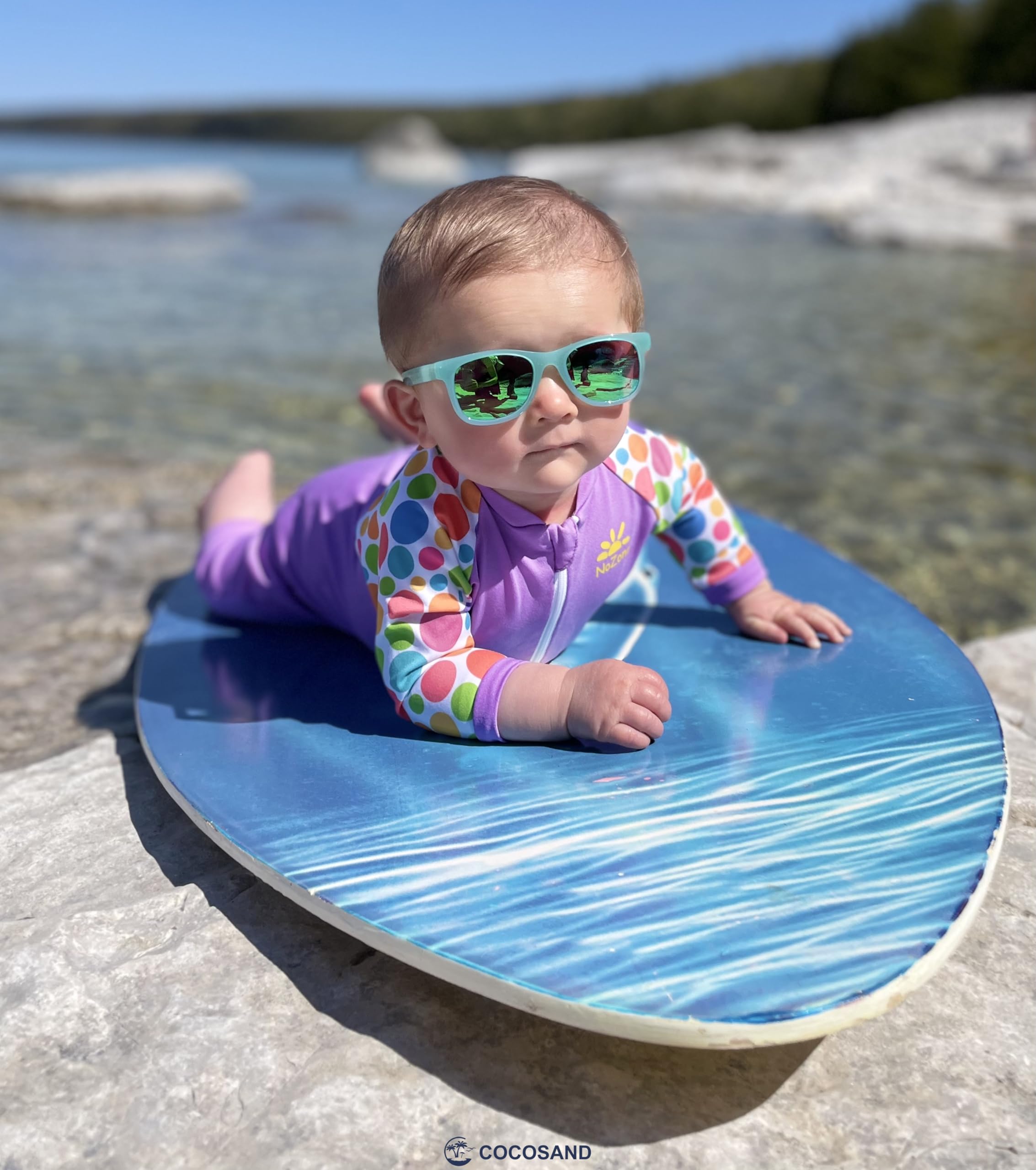 Lens: Polarized lenses. Blocks UVA, UVB and harmful blue ray. HD vision, Glare Free. Wearing it in outdoor activities can reduce eye fatigue, reduce the damage caused by sunlight to baby's eyes