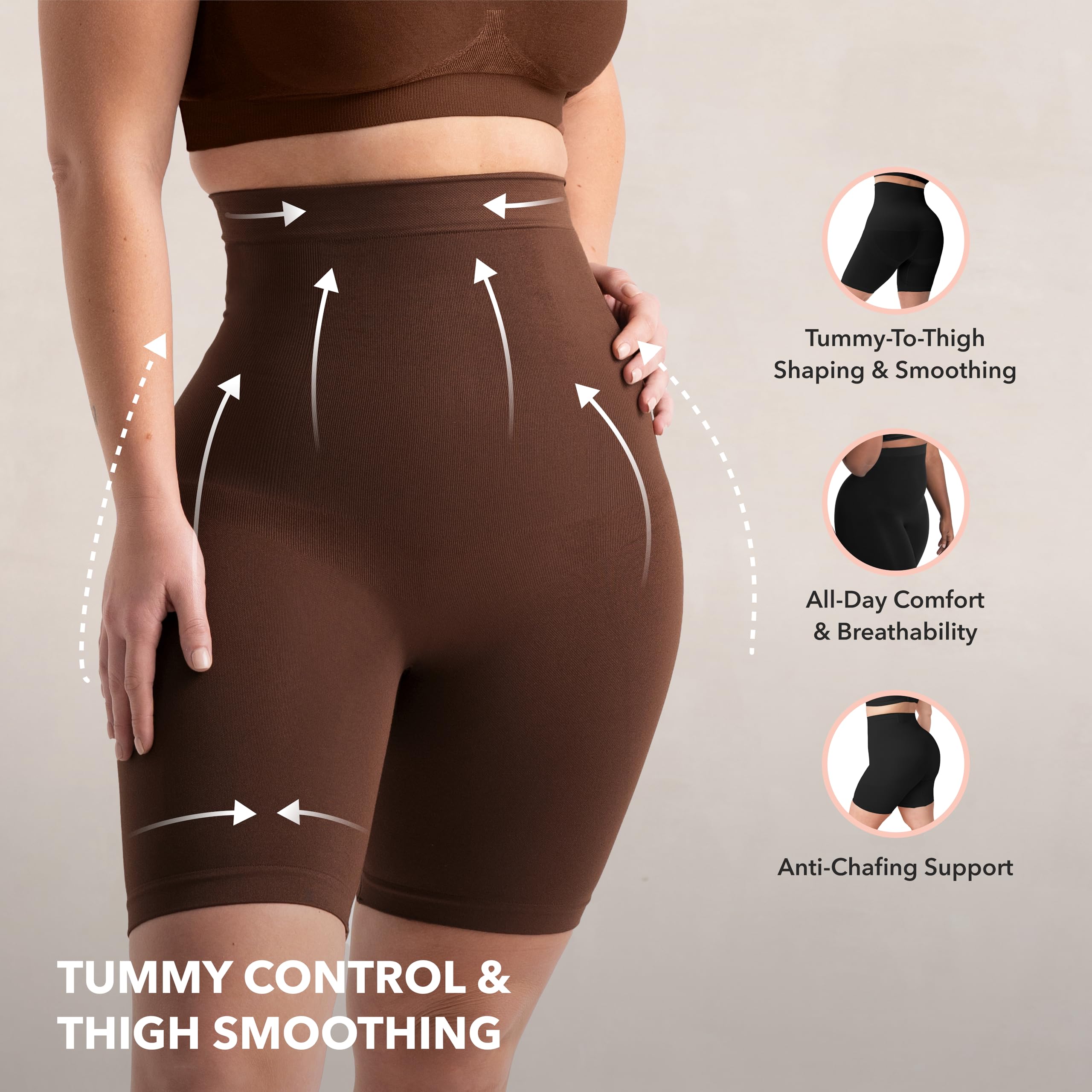 INVISIBLE SUPPORT UNDER ANY OUTFIT: Crafted with a seamless shapewear tummy control design, these shorts smooth your midsection and thighs without lines or digging. Perfect for layering, they stay invisible under tight clothes and hold up beautifully, even after machine washing.