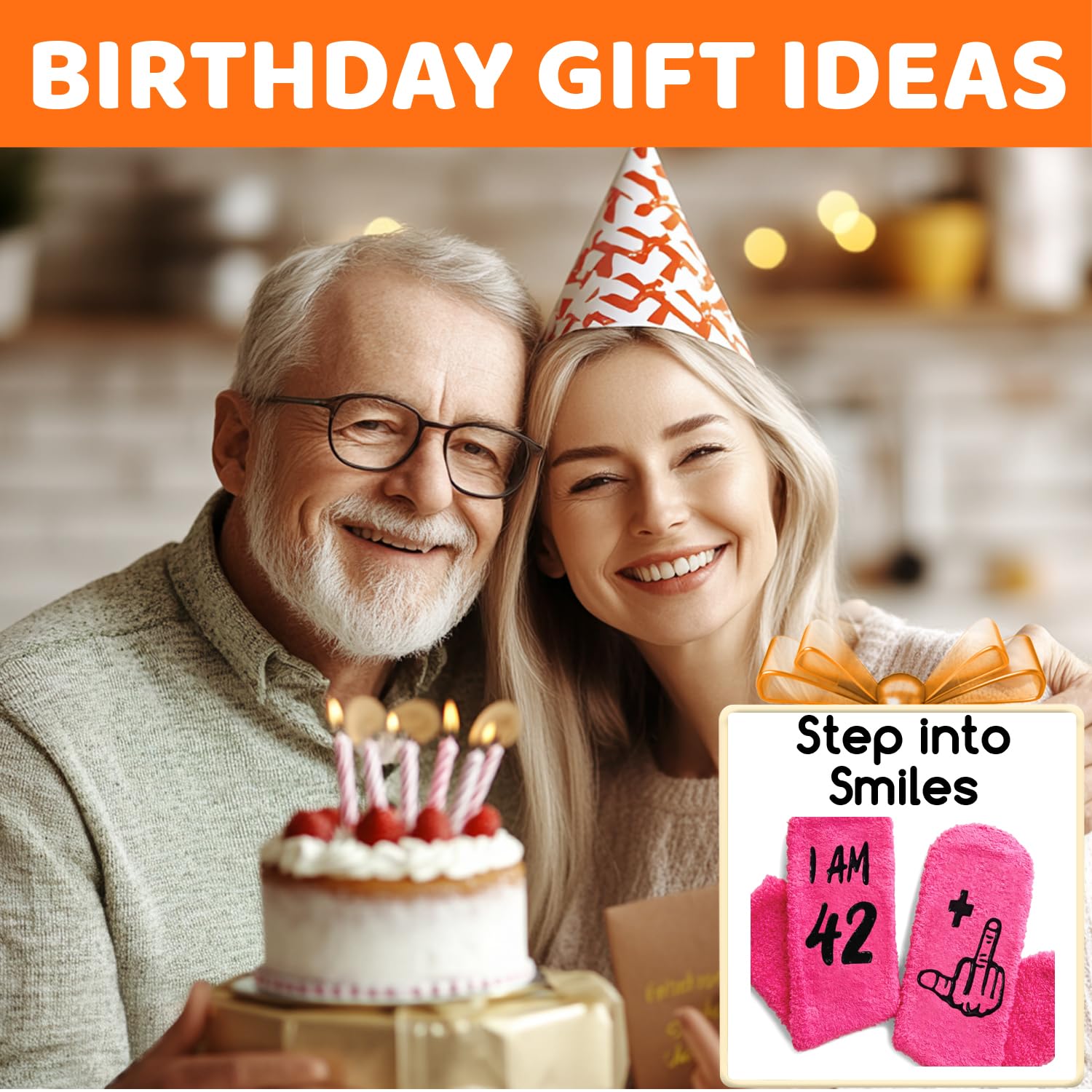 BIRTHDAY GIFTS FOR WOMEN: Make her birthday unforgettable with cozy, cheeky socks that say "I AM 42 +1" – a fun, heartfelt gift for mom, wife, sister, aunt or female friend turning 43. Thoughtful, lighthearted, and full of love.