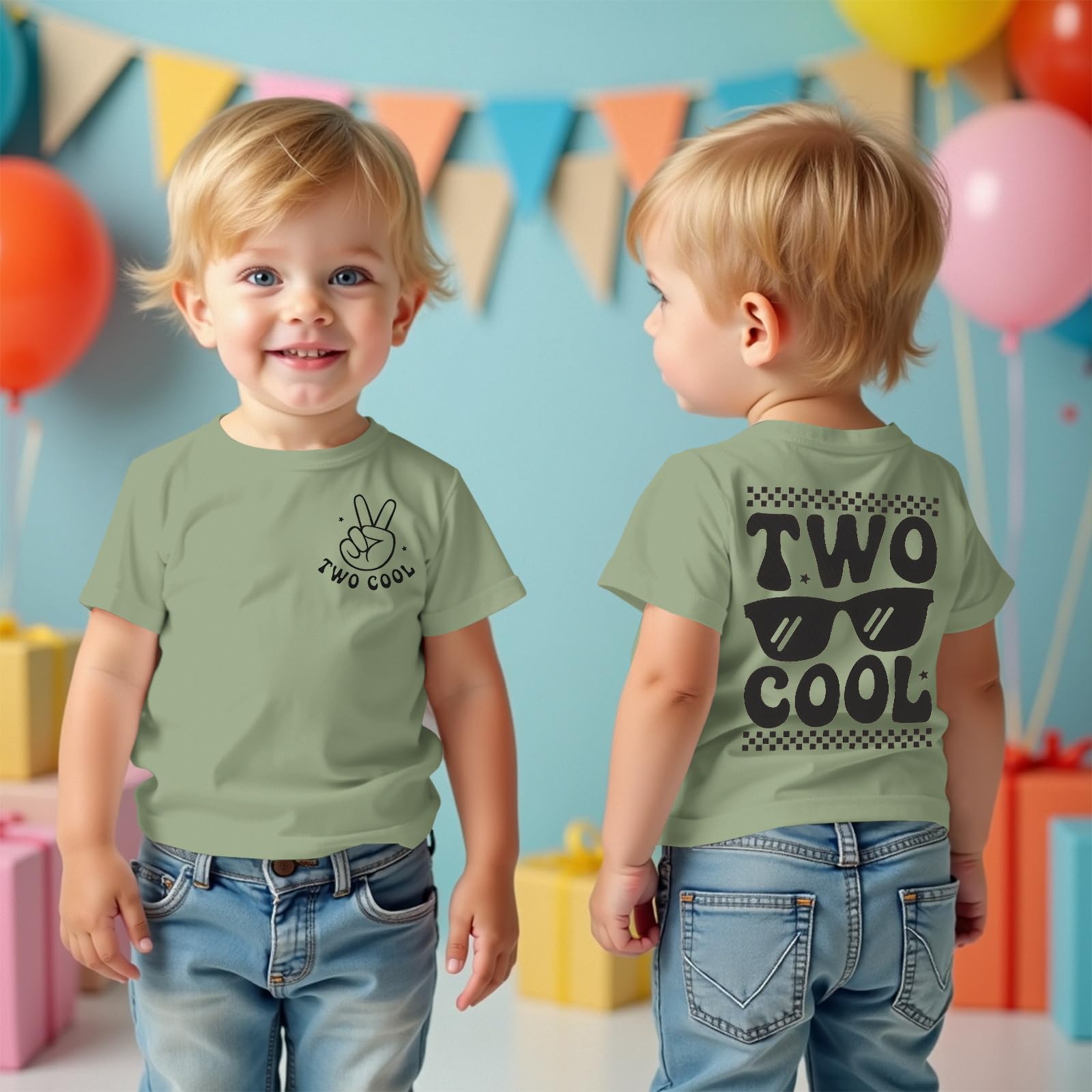 Design: Two cool shirt, funny two cool double-sided printing design, cute cool glasses graphic, cool 2 years awesome design, two 2yr 2nd birthday outfit, elastic round neck design for easy wearing. Two cool toddler shirt perfect for two cool birthday party decorations boy.