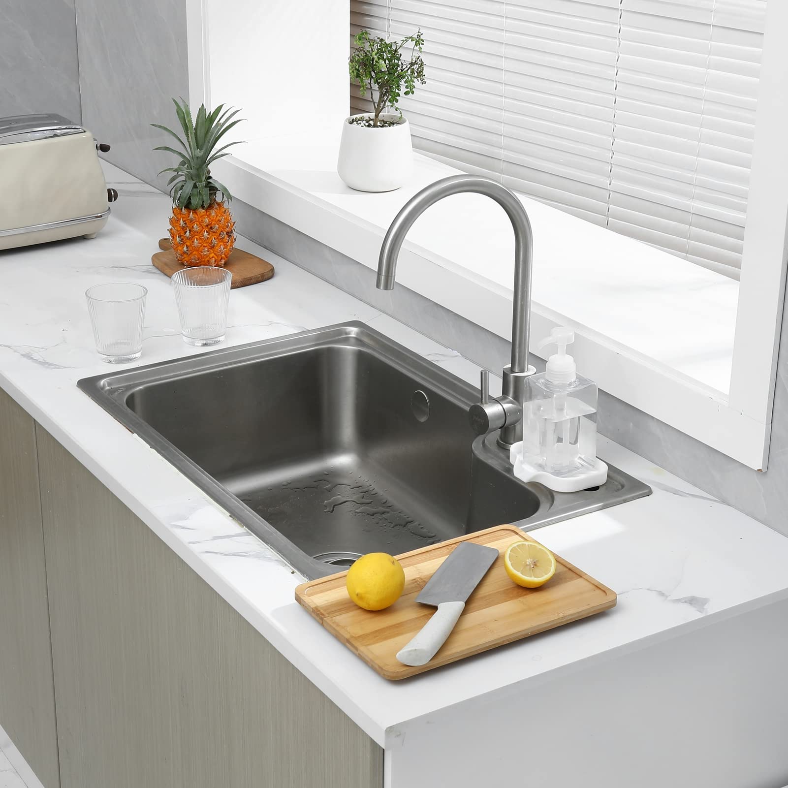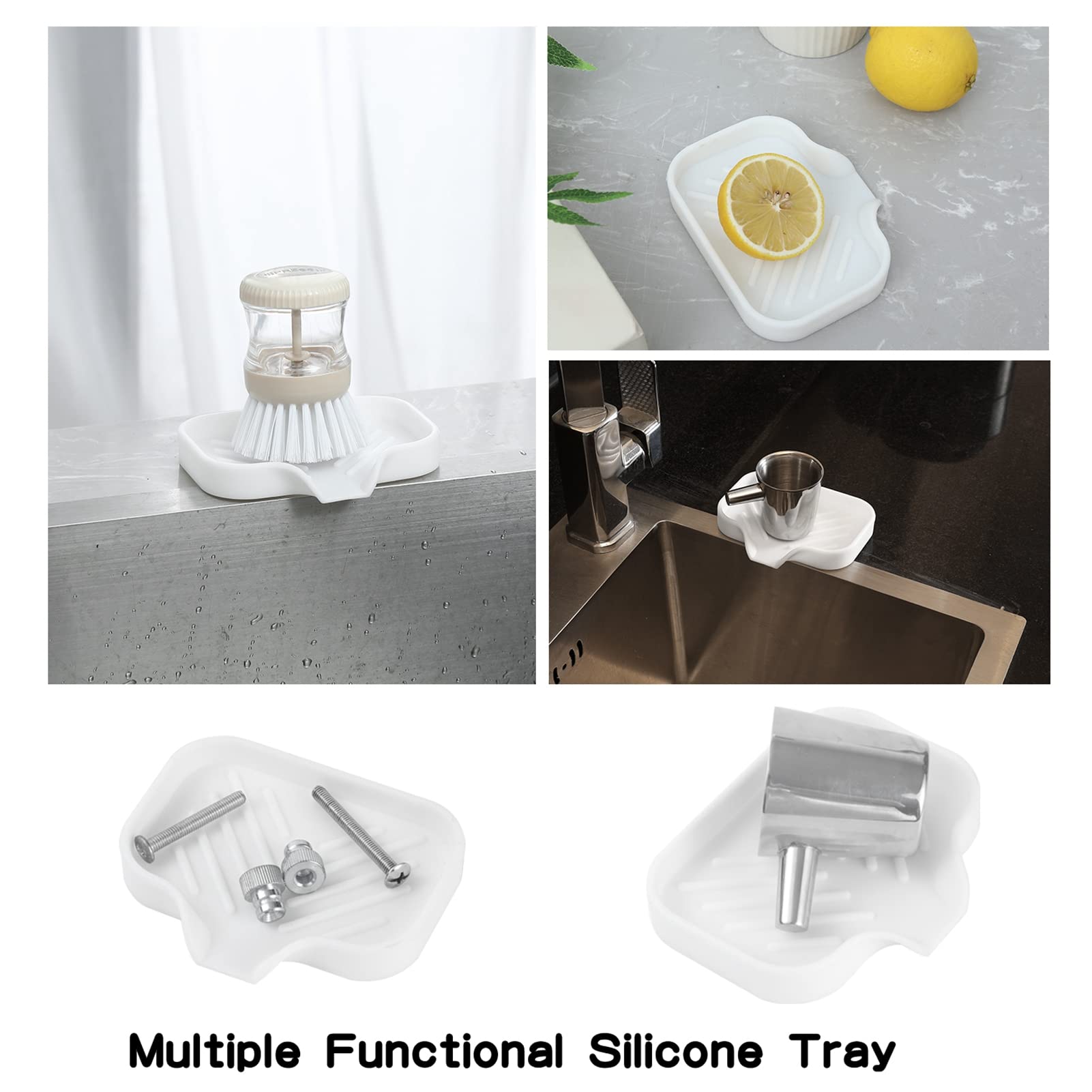 Food Grade Silicone: The soap dispenser tray is made from high-quality food grade silicone, so it's safe for use in the kitchen or bathroom