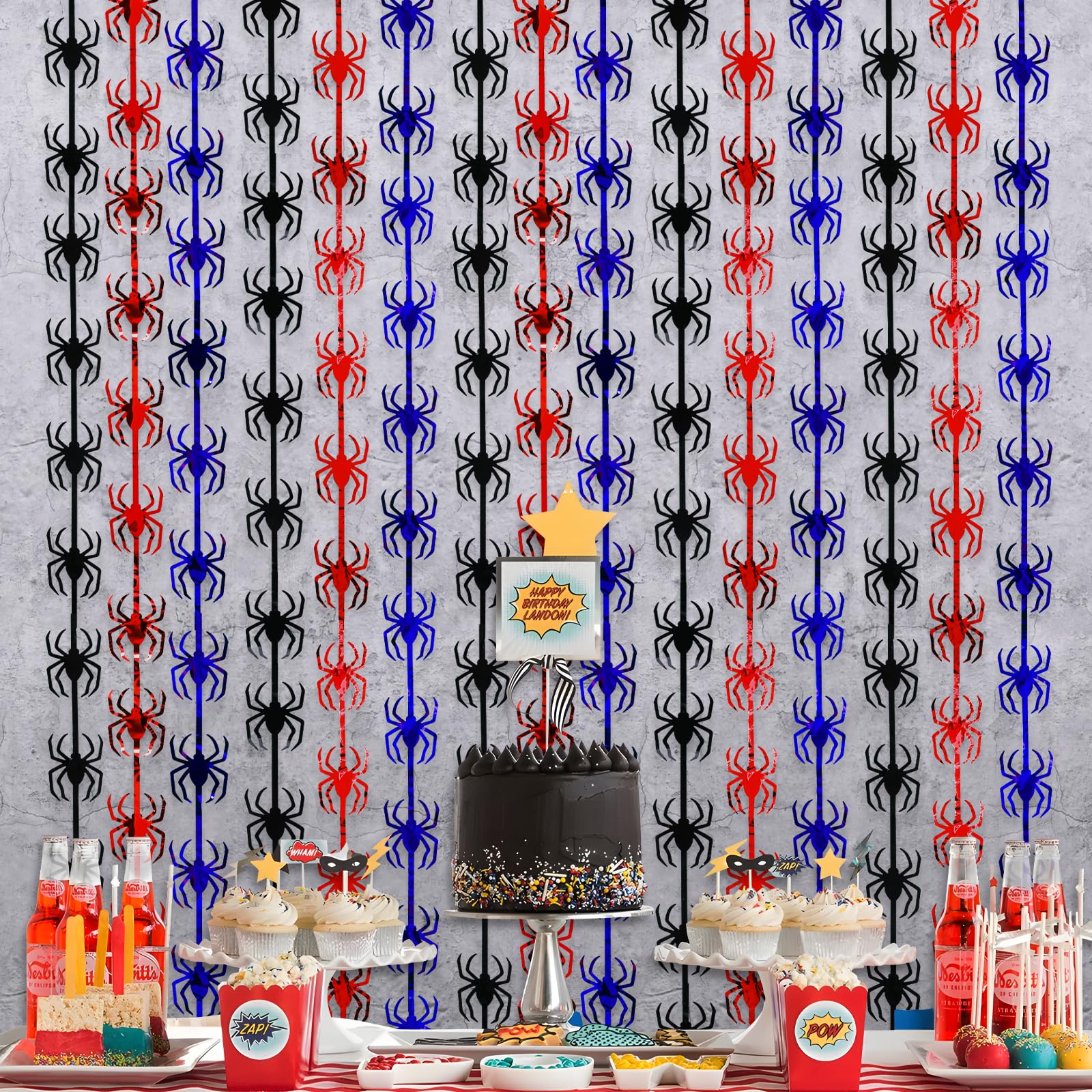 π·οΈ γ SPIDER BIRTHDAY PARTY SUPPLIES γ: 2 packs of spider foil fringe curtains print with spider web pattern, size (width x drop):3.3 x 6.6 ft each, photo booth props backdrop for kids birthday party.