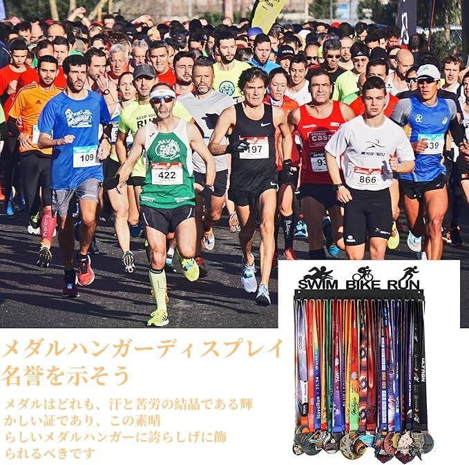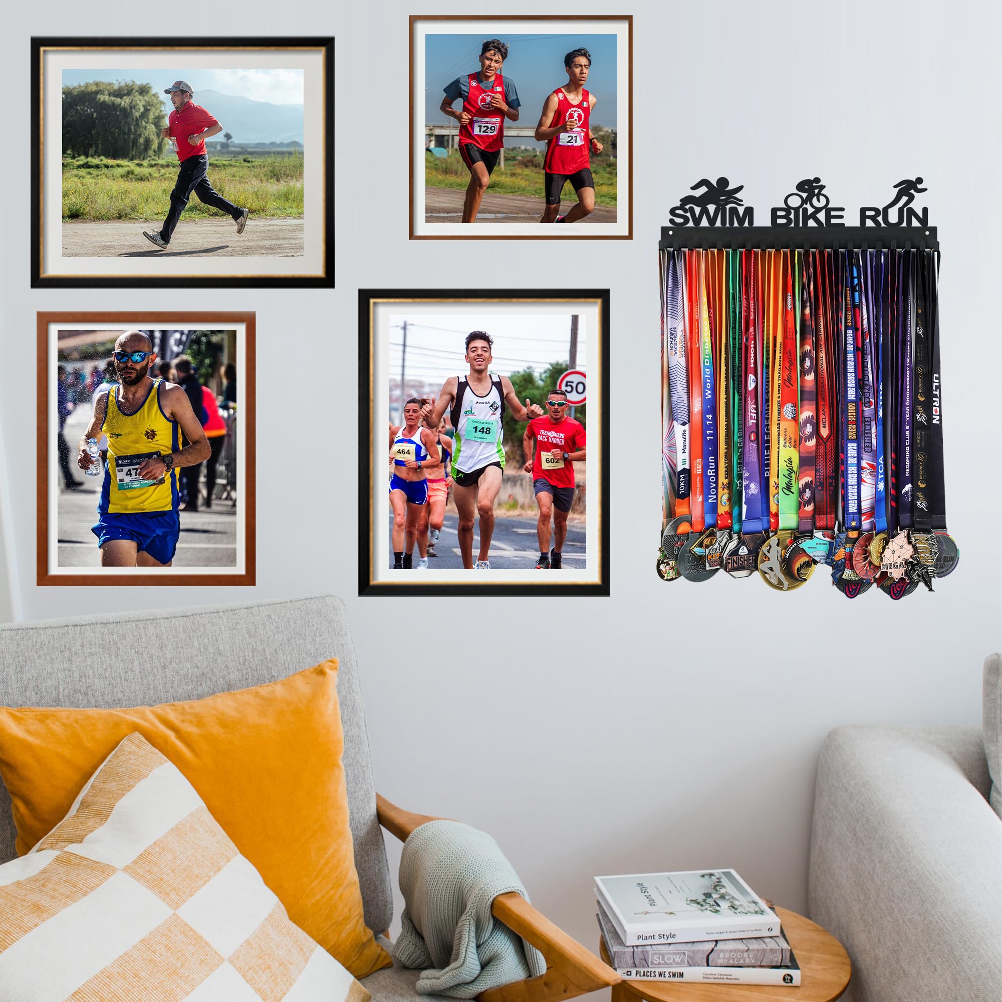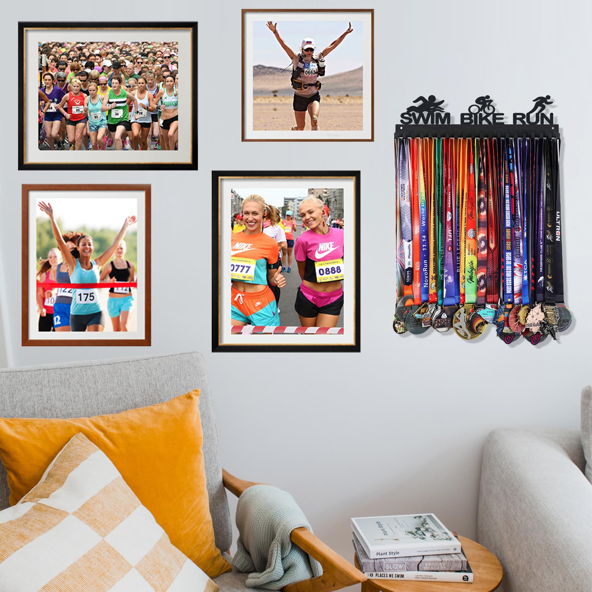 Organized & Spacious: Built for endurance athletes,Holds 60+ medals, perfect for , Half-Triathlon, Sprint Triathlons, and multisport events. Sleek design complements gyms, home offices, or race-day basements. Dimension: 16 x 6 x 1.2 inches