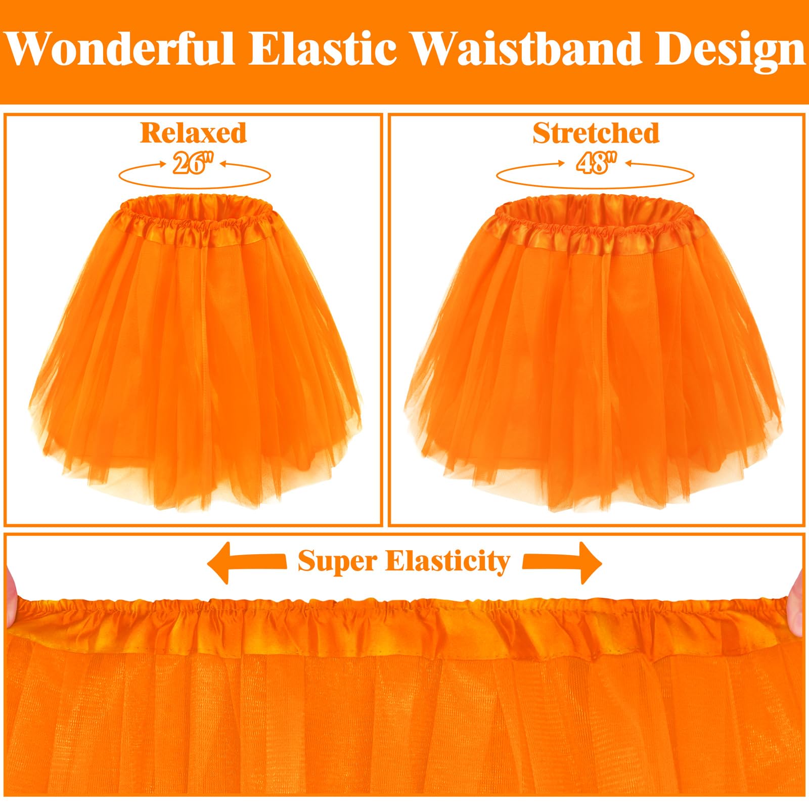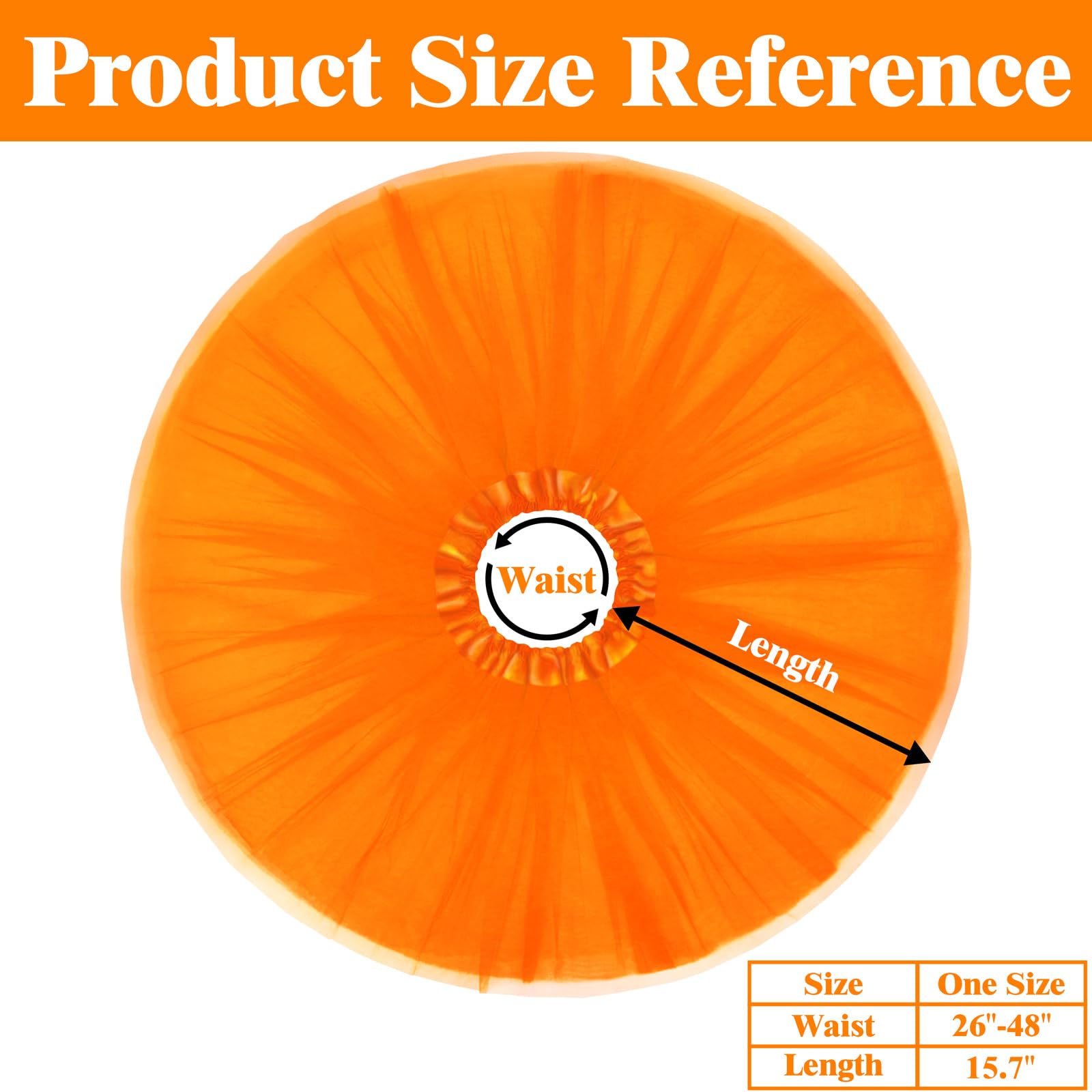ONE SIZE FITS MOST: Our halloween tutu adult specially designed with an adjustable waistband to suit most people. The elastic waistband is made of premium materials with stain and the waist adjustment range is from 26 inches to 48 inches. Whether you are exercising or dancing, the adult tutus can provide a snug fit without tightness. The length of the tutu skirt adult is about 15.7 inches and benefit to move freely. And the satin fabric of the waistbelt avoids the discomfort caused by friction.