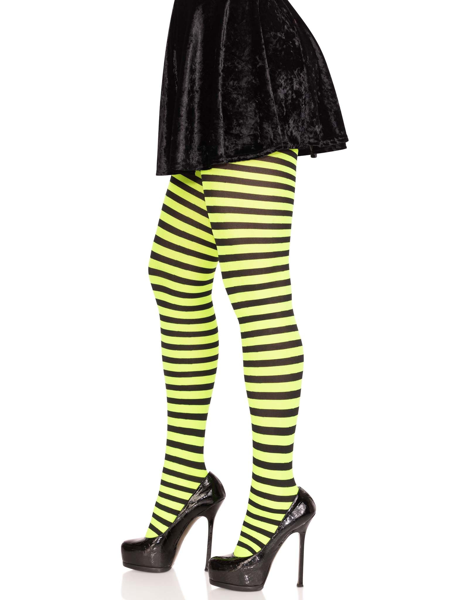 Take basic tights and add a fun twist! Complete your outfit with the Leg Avenue stretchy nylon striped tights.