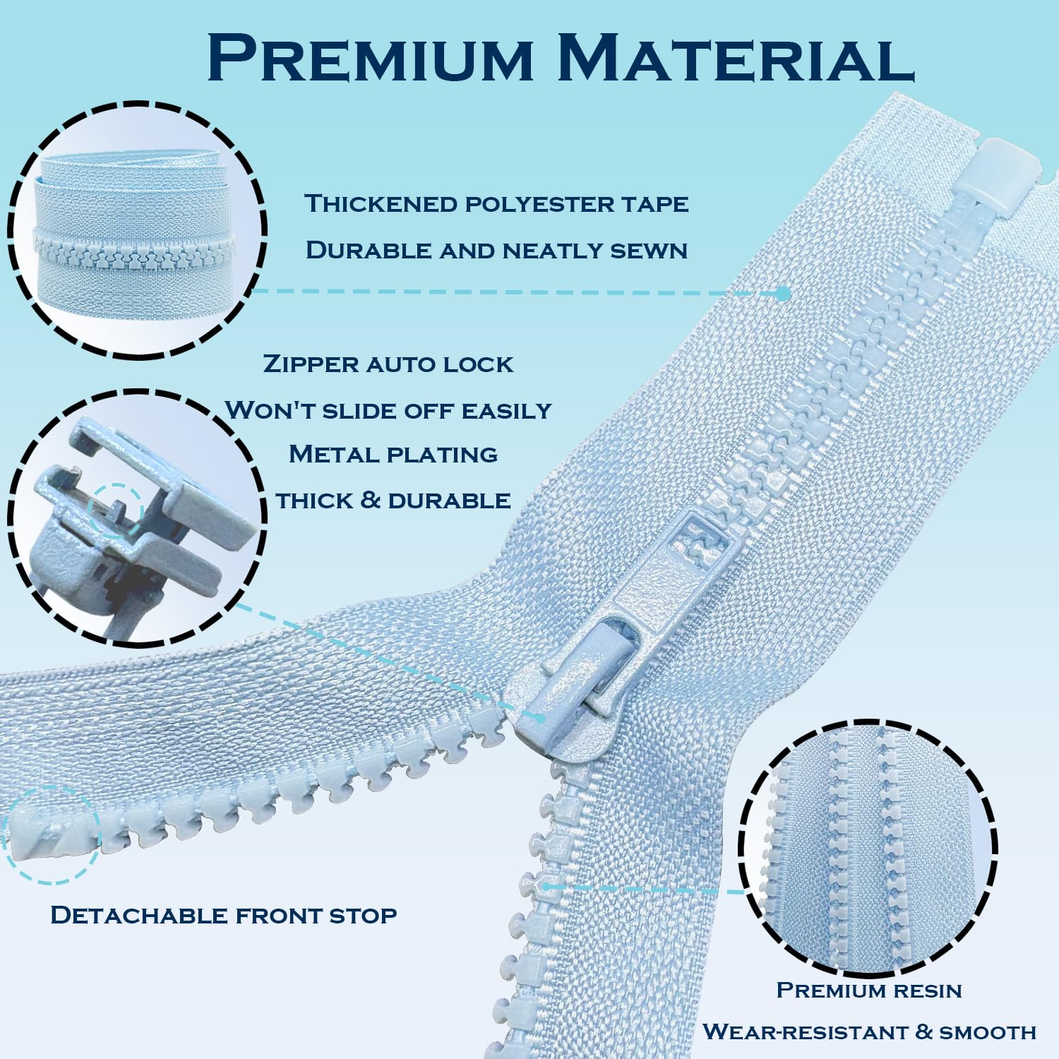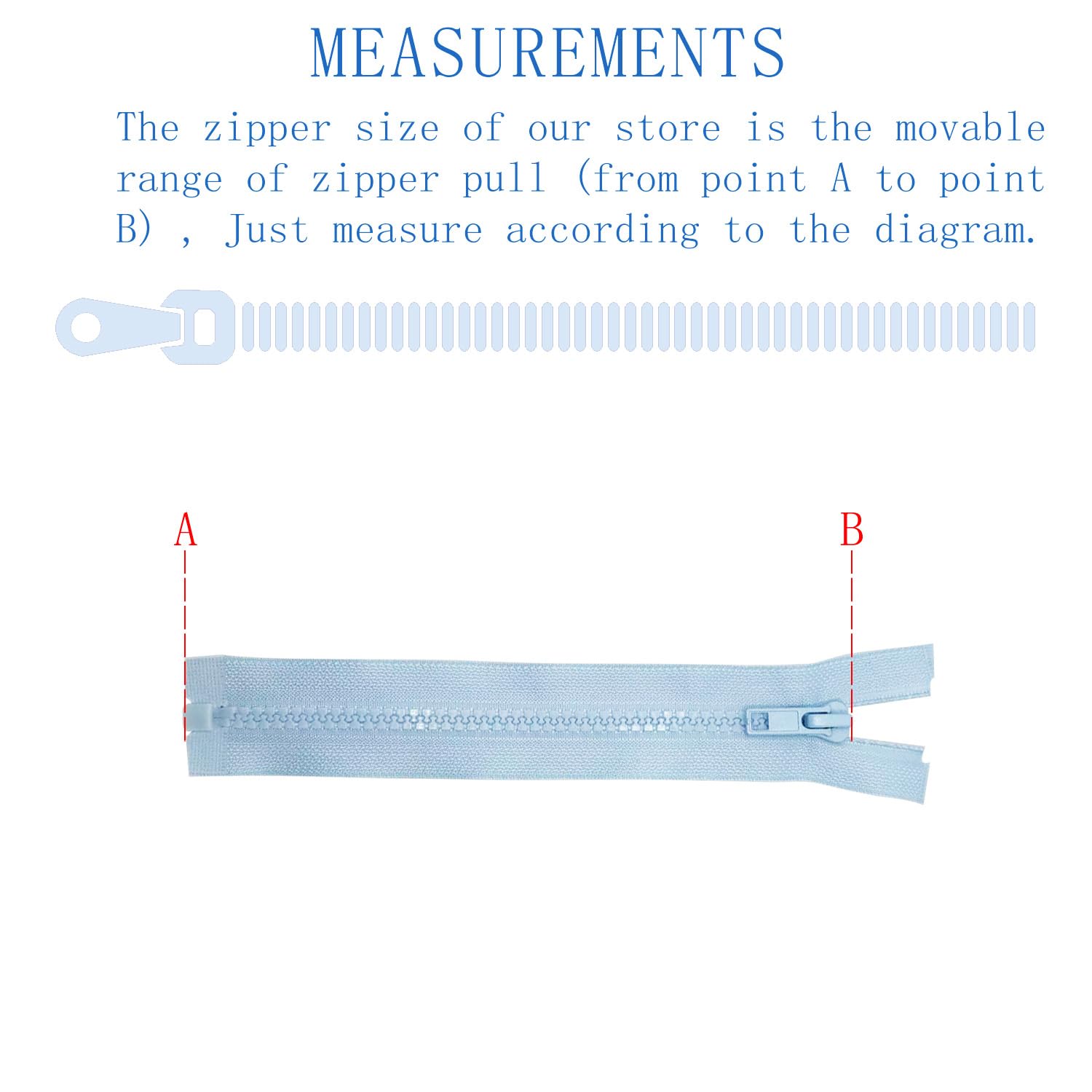 【Size】The Product Contains 2PCS Sky Blue Zippers, With A Length Of 25 Inches And A Left Hand Zipper. 25 inch from bottom to top (teeth length), the full length is 26 inch end to end.