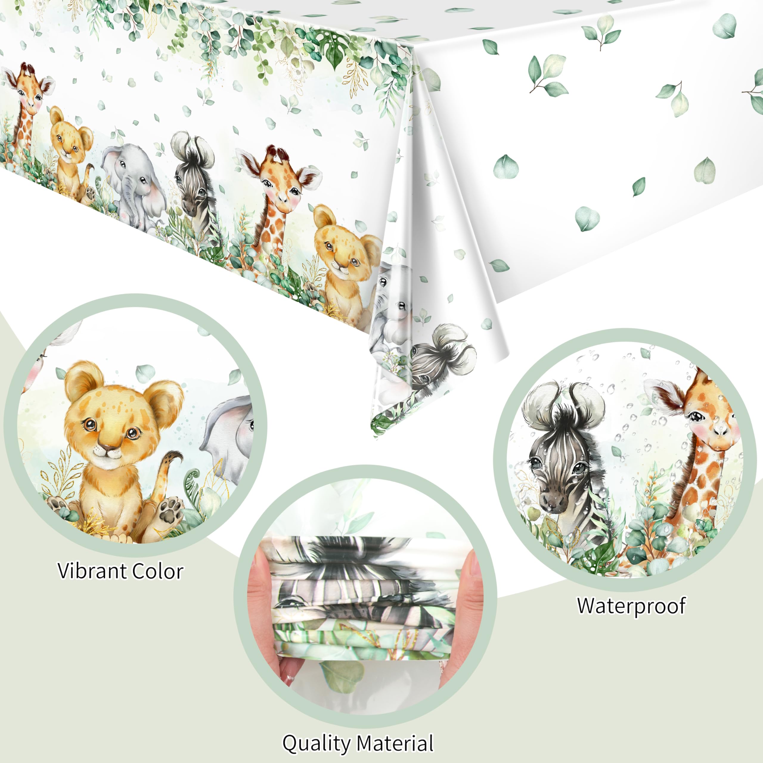 Tablecloth or Backdrop - Baby wild animal table covers can not only served as table decor for baby shower birthday party, but also as decorative backdrop for kitchen, dining room, picnic, camping, or playground.