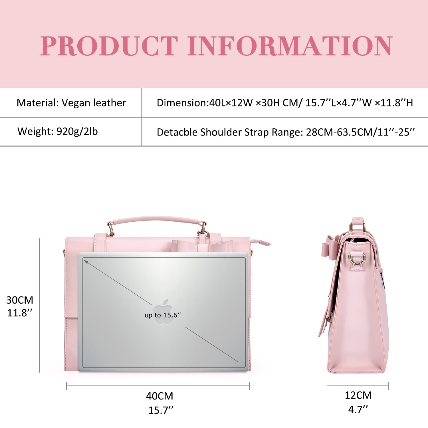 ORIGINAL DESIGN - A detachable bow adds a more feminine touch to this professional briefcase. Suitable for college, work, business trip, to hold a laptop, wallet, phone, binder, folder, padfolio, etc.