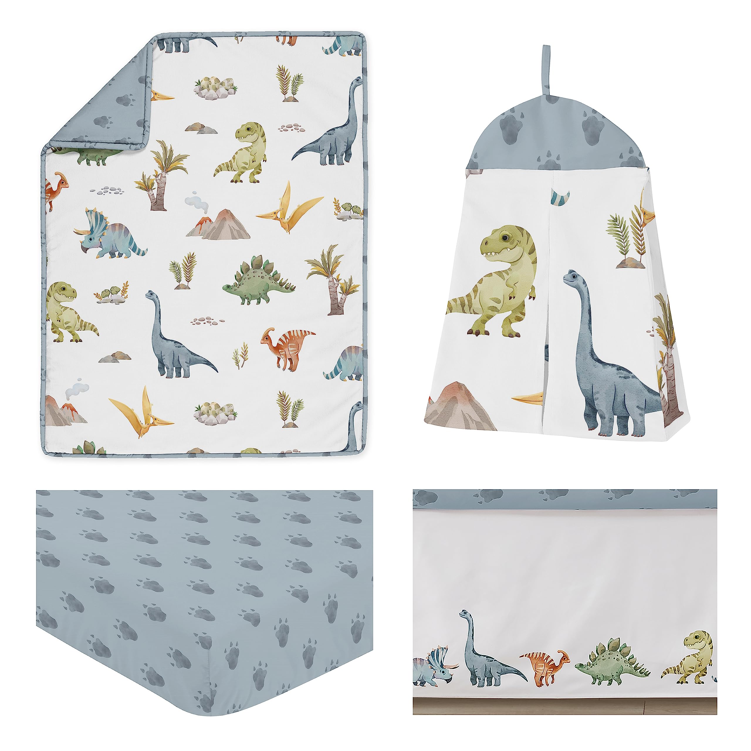 4 Piece Set Includes: Crib Blanket, Fitted Crib Sheet, Crib Skirt, and Diaper stacker