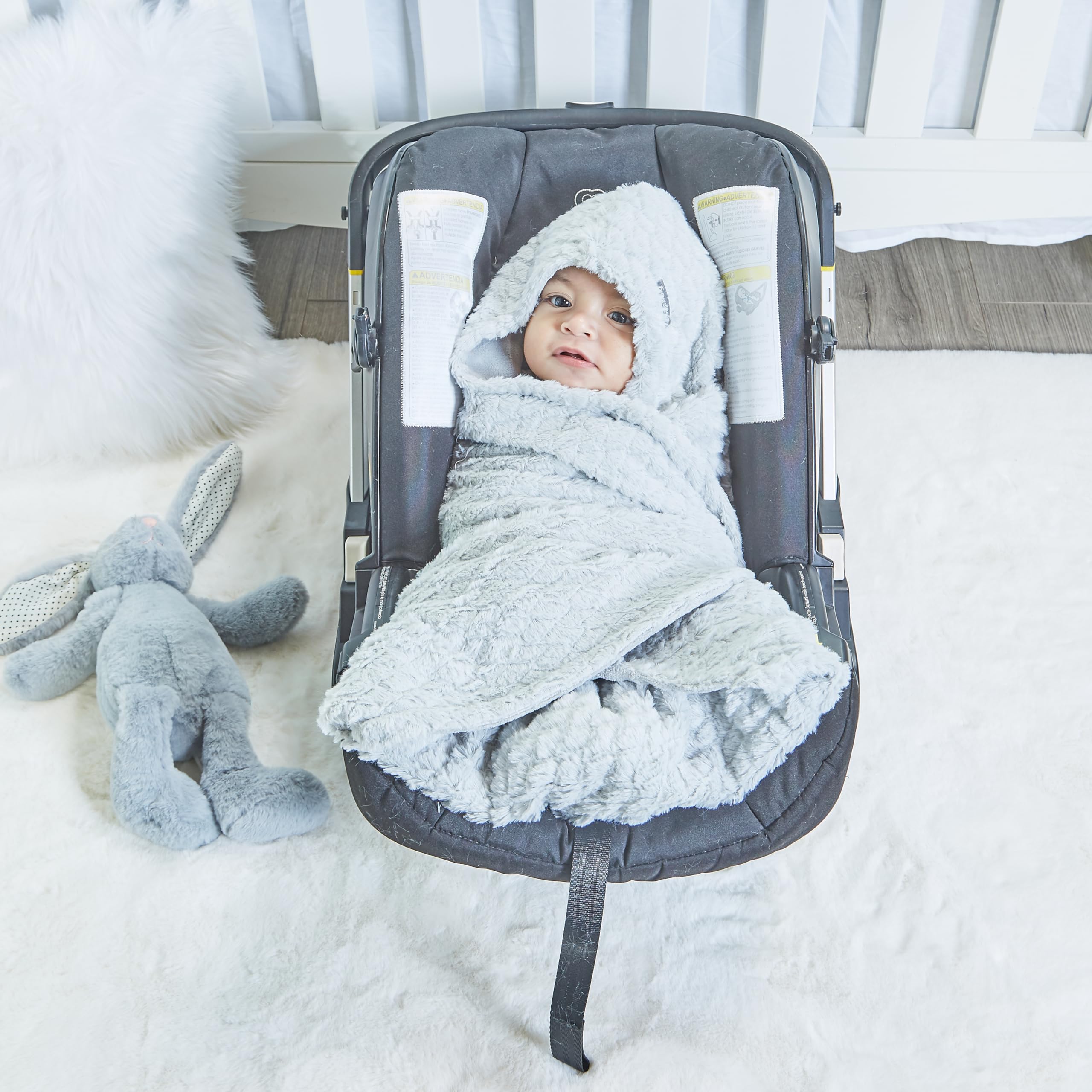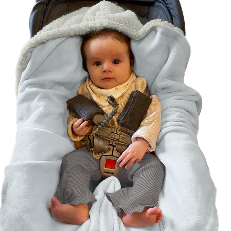 GENDER NEUTRAL LIGHT GRAY FUR AND FLEECE BLANKET FOR BABY BOYS AND GIRLS: In a pretty pastel gray, this car seat cover will complement most car seat fabrics. The bottom is plush fleece while the top is ultra-soft to the touch faux fur! Measures 40 x 40 inches.