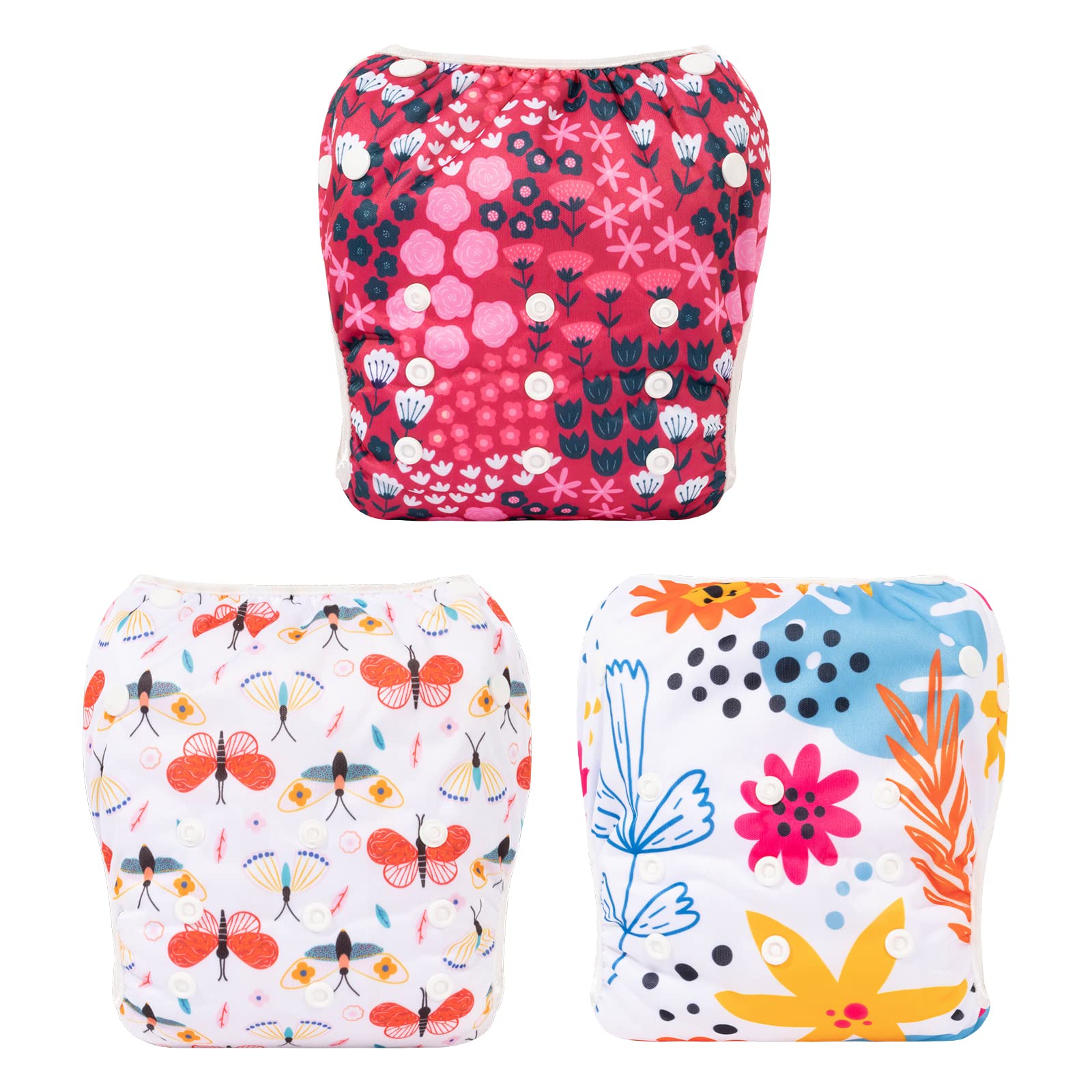 HIGH QUALITY, ADJUSTABLE, REUSABLE & WATERPROOF -ALVABABY swim diapers are made from waterproof 100% polyester PUL outer layer. Elastics waist and legs: Interior Polyester Elastics at the waist and leg openings with soft lycra bindings provides a secure, stretchy fit and easy on and off.