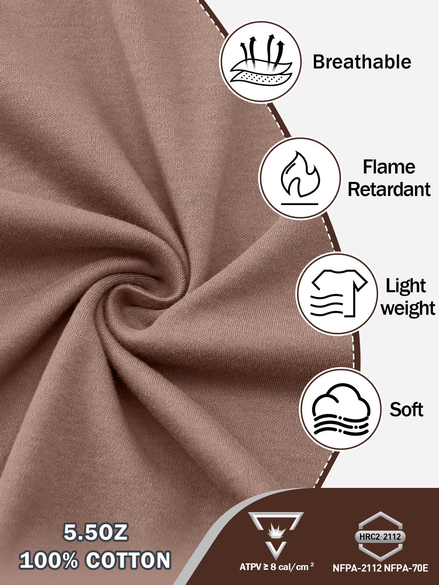 【Quality Material】This durable 5.5 oz flame retardant shirt is made from 100% FR cotton - high tech fire resistant fabric. The material is soft, lightweight and breathable while still offering outstanding protection against fire, flame and arc flash. FR properties are good up to a 114 wash max.