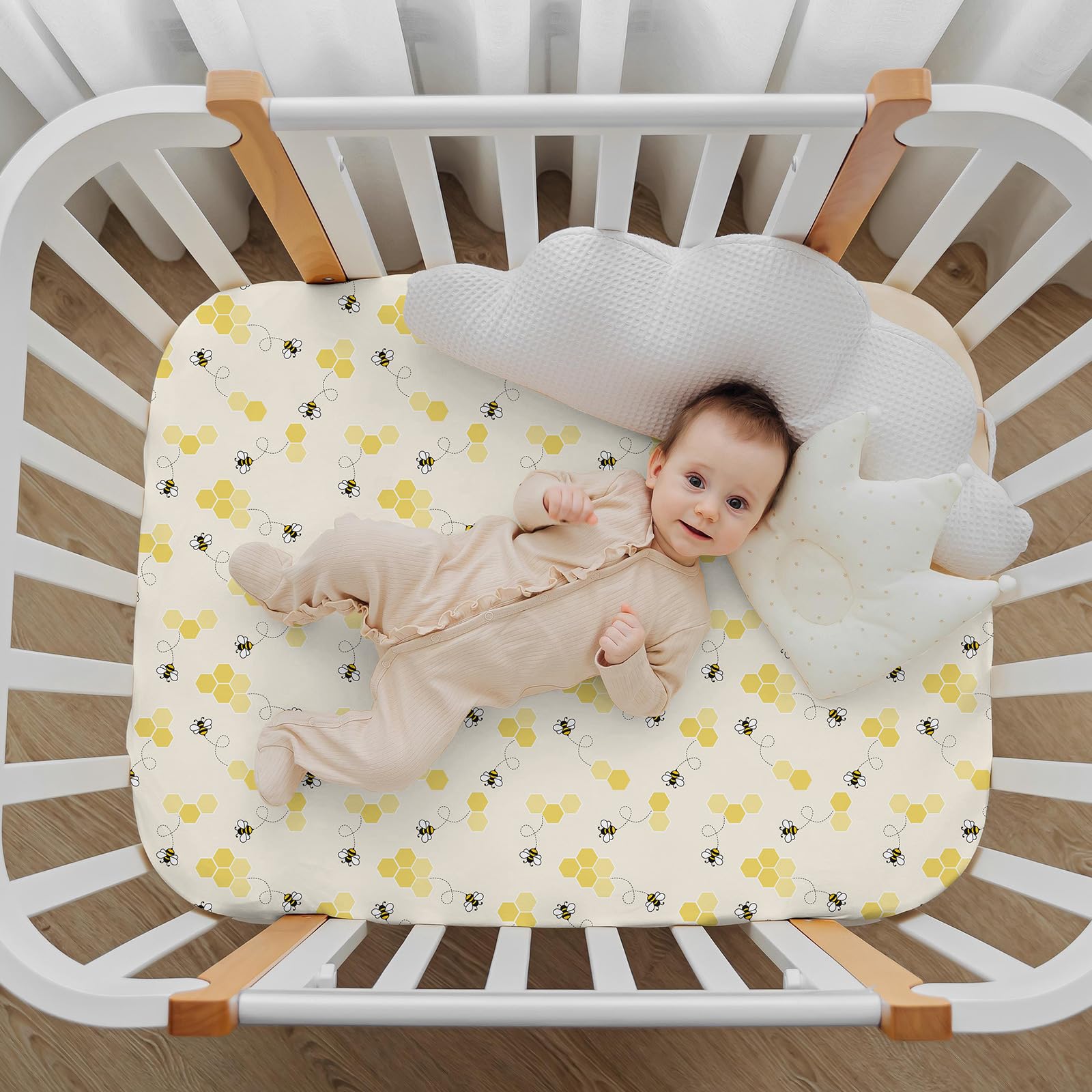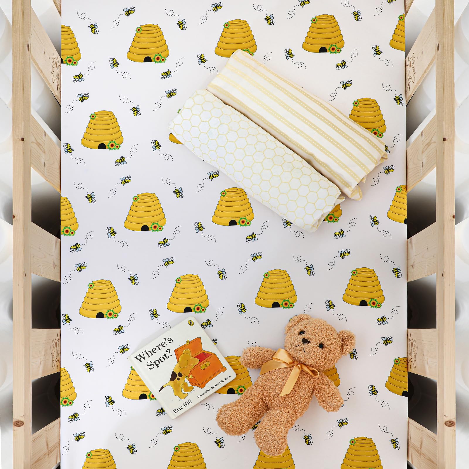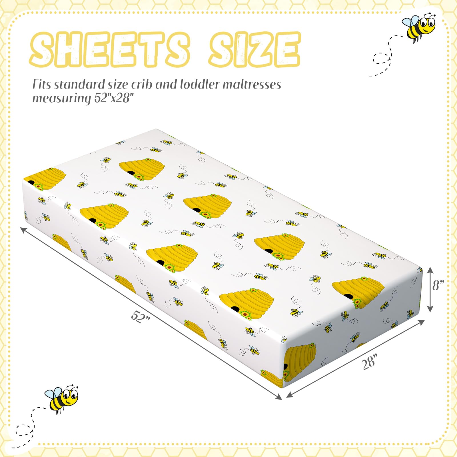 Distinctive Style with Playful Theme: the set offers four charming designs in a delightful yellow bee themed series, featuring cheerful bees, and honeycombs; These cute patterns inspire imagination and create a warm, vibrant atmosphere in any nursery—suitable for both boys and girls