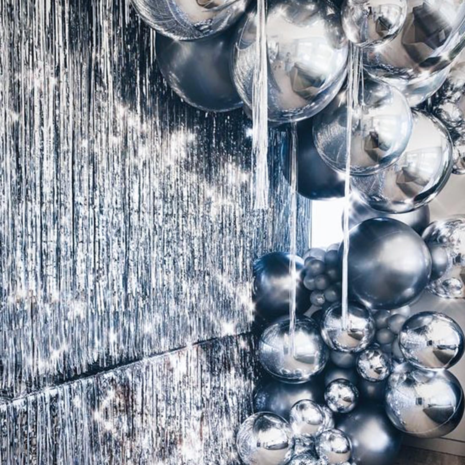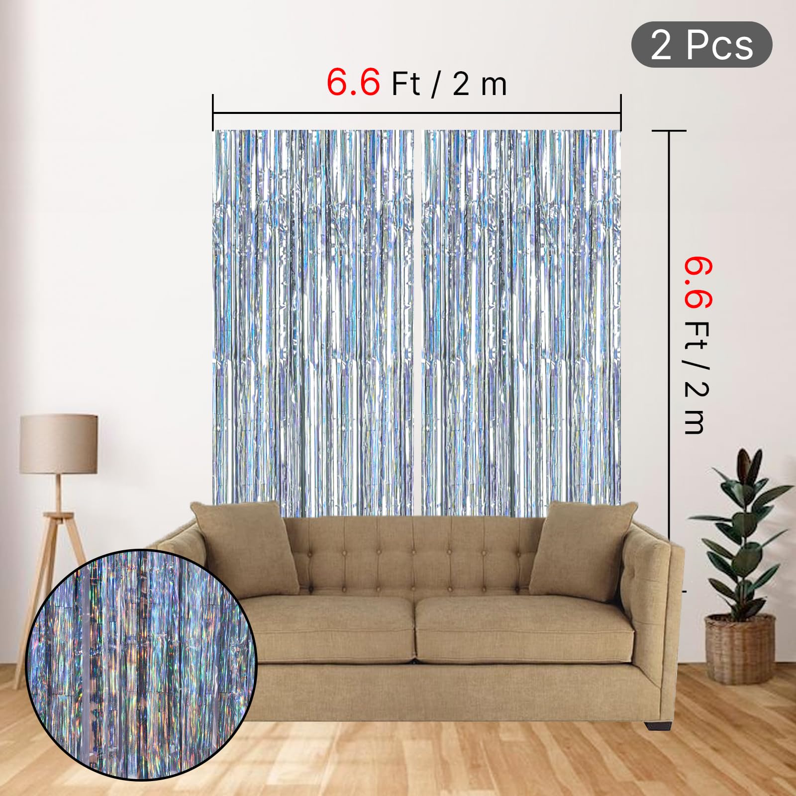 Including: 2 pcs silver foil fringe curtains, 6.6 feet length x3.3 feet width